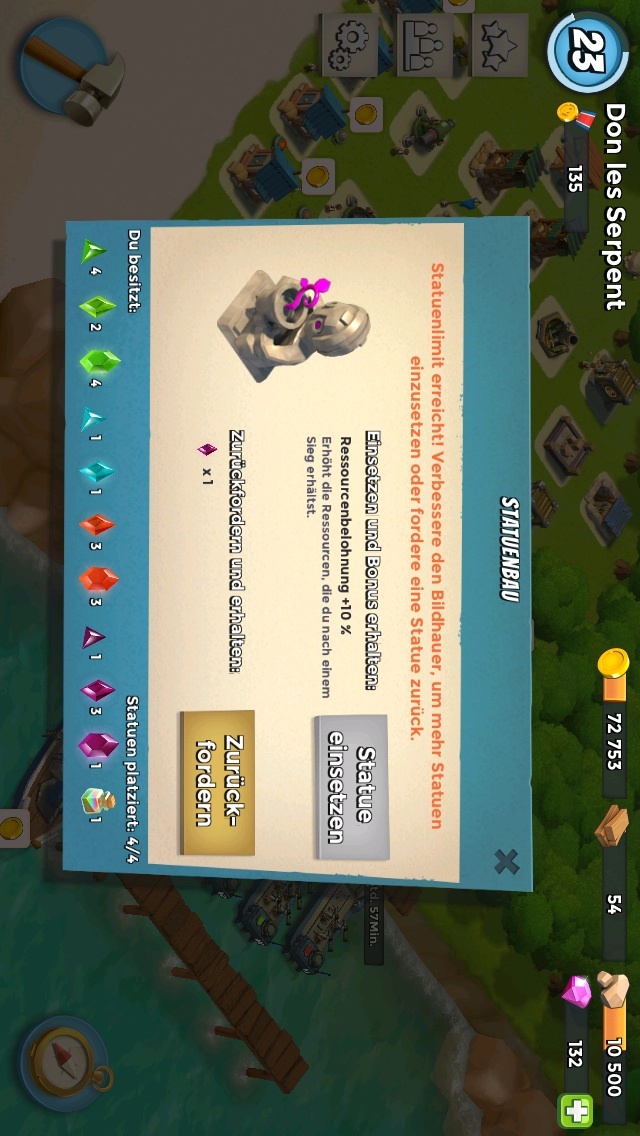 http://forum.supercell.net/sho…e-to-Crystals-and-StatuesMan kann kein Meisterwerk der gleichen Farbe mit der gleichen Eigenschaft haben also man kann zwar zB 2 rote Meisterwerke haben aber es geht nur wenn die eine Statue truppen Schaden gibt und die andere Truppen leben wenn du dann eine 3. rotes Meisterwerk bekommst mit zB truppen Leben müsst du die andere Truppen leben Statue zerstören um diese setzen zu können du kannst dann aber du kannst dazu noch Guardian Statuen haben da ist es egal ob du mehrere der selben Farbe des gleichen Untertypen hast ist zwar schwer zu erklären