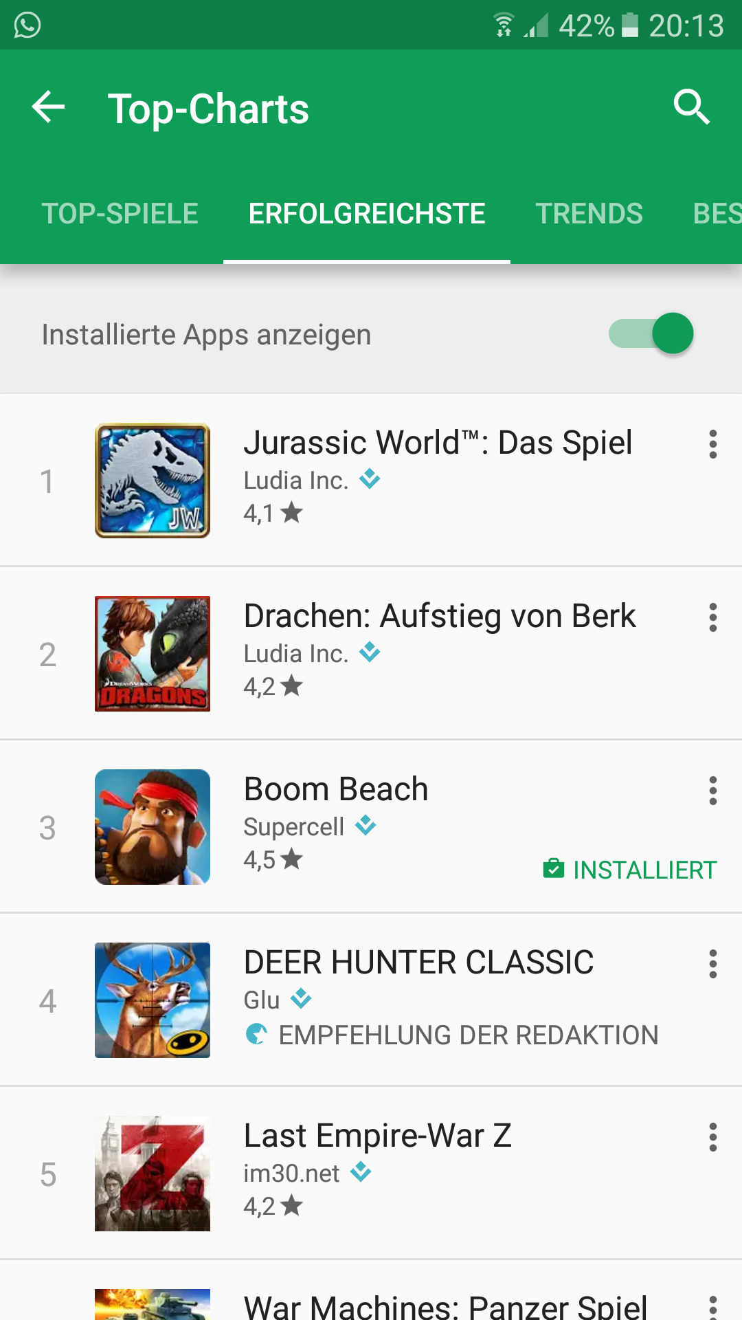 Also entweder Boom Beach hat auf einmal den größten Hype, weil vielleicht irgendein großer YouTuber oder so das spielt, oder die Google Play Liste ist gerade einfach verbuggt.