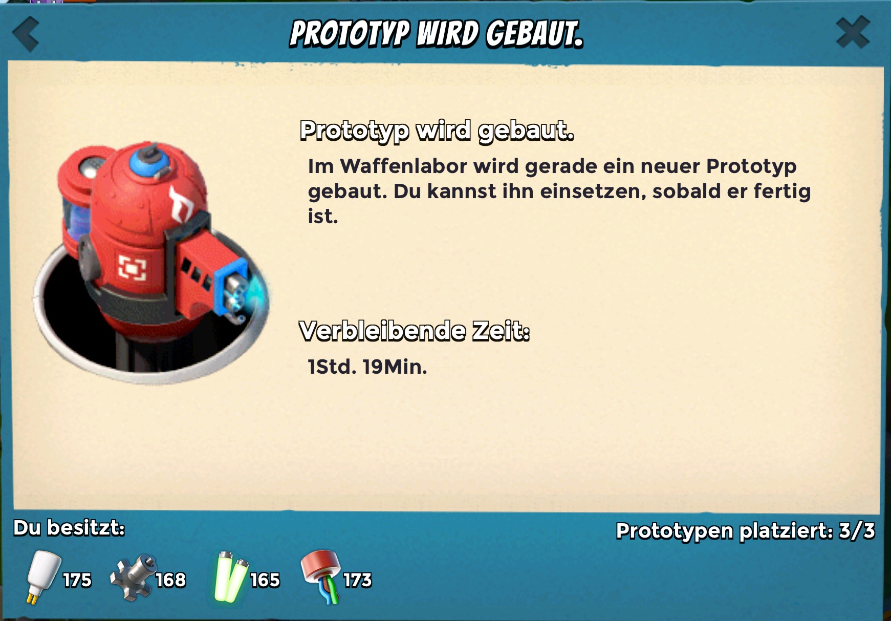 Um es etwas zu verdeutlichen: Aktuell habe ich 7 Gegner auf meiner Karte die je 3 Prototypen Stufe 3 haben plus 4-7 Blaue. Das sind 54 Prototeile pro Woche, ergo wird denen das definitiv früher oder später ausgehen. Und daran kann auch ein Mathematikgenie wie Du und auch ich nichts ändern. Es ist und bleibt ein Minus, das was die verballern kommt pro Woche nie zurück. Das wird kein Jahr dauern, eher ca 4 Monate (Ich Mathegenie), dann hat von denen keiner mehr Vorrat an Prototeilen.