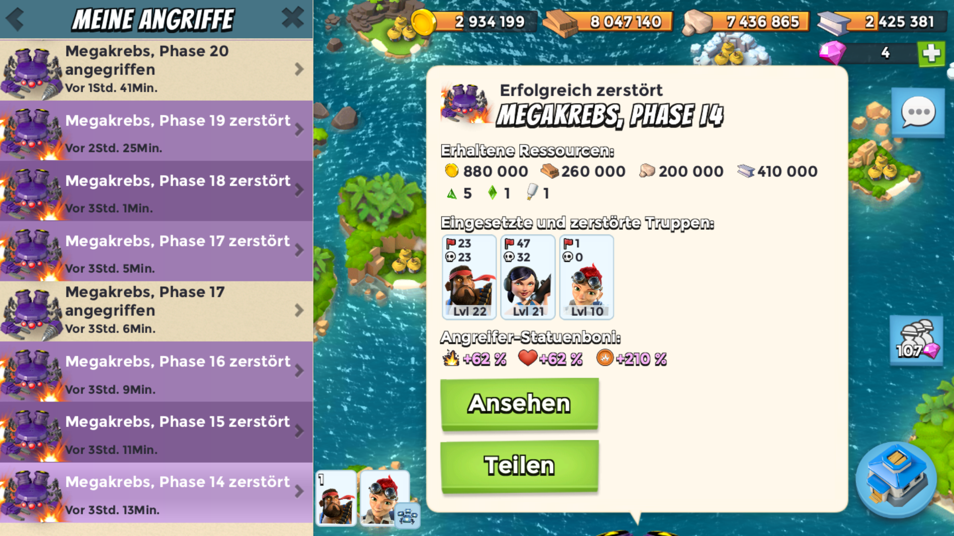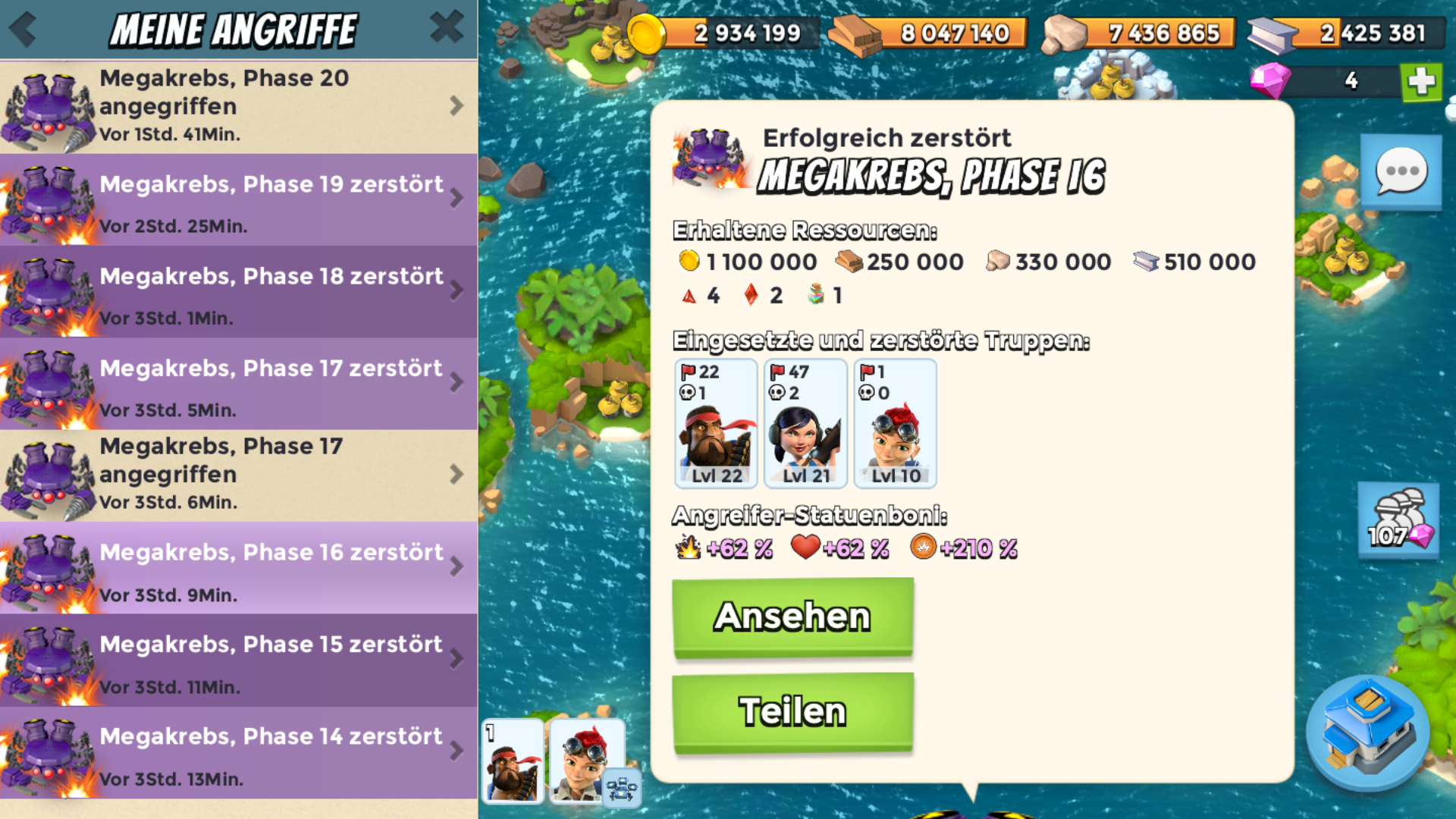 Und wieviel Steinchen hast du da bekommen? 5 Kleine und einen Mittleren oder was anderes? Oben habe ich ja zum Vergleich Level 4 bis 17 gepostet