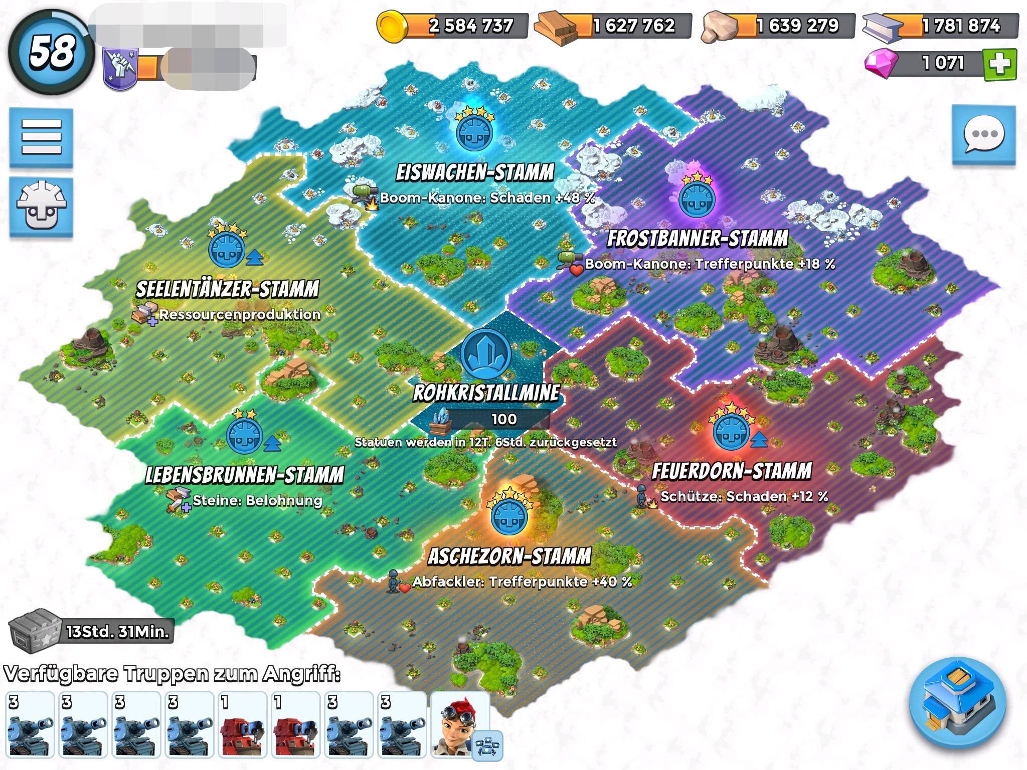 Es ist jetzt schon bisschen her, das die Stämme hinzugefügt wurden, und da würde es mich mal interessieren, wie eure Stämme mittlerweile gelevelt sind. Wie meine gelevelt sind, seht ihr ja auf dem Screenshot.