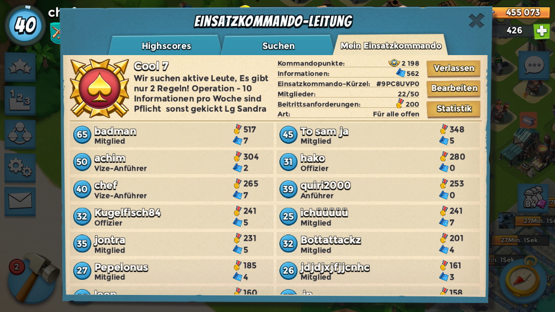 Hallo wir brauchen neue mit Spieler die Aktive sind bei der Cool 7 würde mich freuen wenn ihr zu uns findet..die Truppe Cool 7 ist wirklich eine starke Mannschaft du bis bei uns herzlich willkommen lg