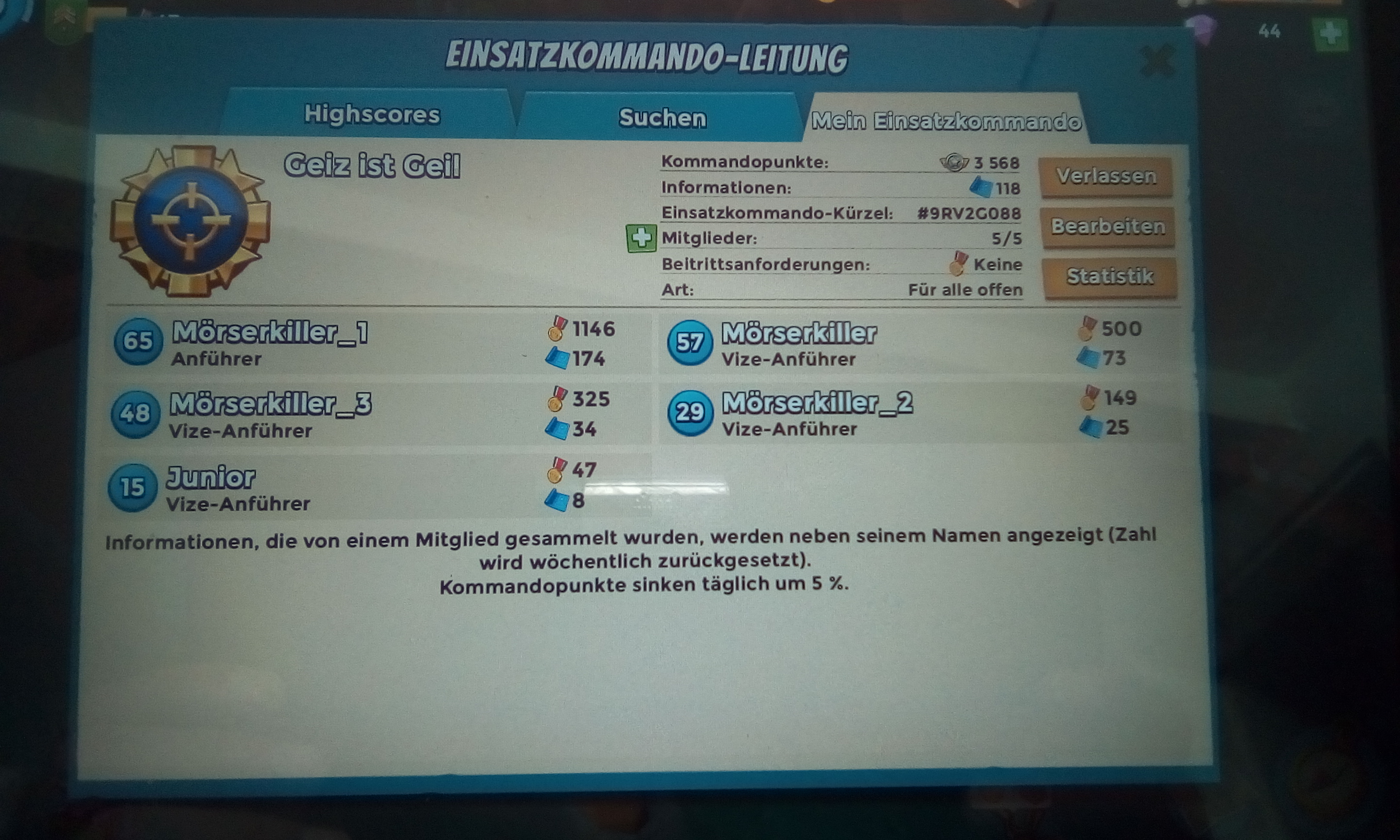 Und das Team? Jedes Mitglied litt zunehmend darunter. Denn sie stiegen alle auf. Gelegentlich versuchte einer, über 1000 Punkte zu kommen - mit den Folgen für seine Motivation in der Folgezeit. Außer Missionen gab es keine Teamaufgabe. Und die waren zu reglementiert. In einem 10er-Team mussten mindesten neun jeden Tag antreten, weil es stets um fünf Karten ging. Die neuste Erweiterung ist so gesehen totaler Quatsch, schlicht in die völlig falsche Richtung. Was ich mir beispielsweise seit Ewigkeiten wünschte - eine Loslösung von diesen blöden 24 Stunden, etwa in Form: Wenn ein Team vor Abschluss der Zeit alle Karten erledigt hat, dann wird die verbleibende Zeit halbiert - wurde nie geboten. Wir hatten öfters versucht, einen festen Startzeitpunkt einzuhalten; doch durch diese 24 Stunden ging dies nie lange, denn es kamen immer ein paar Minuten drauf, weil nicht immer jemand in der letzten Sekunde der alten Frist bereitstand, gleich eine neue Mission zu starten. Man hätte so viel ändern und erweitern können! Aber nichts geschah, es war, als wäre das ursprüngliche Team komplett gegen phantasielose Idioten ausgetauscht worden.