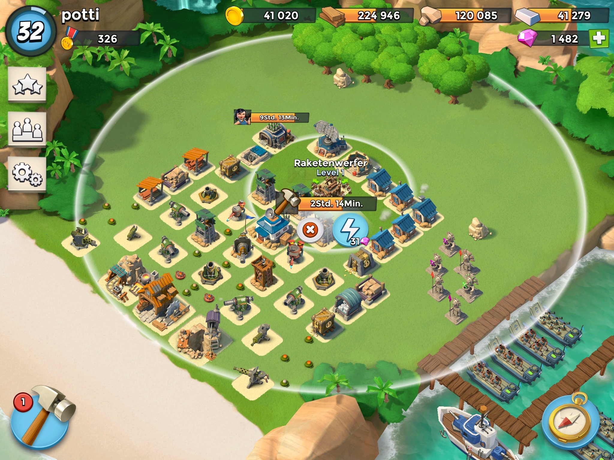 Truppenschaden +26% + 13% | Truppen LP +22% | Beute Boni +48% + 20%+ 19% | 40% + 16% Energie | 65% Kraft durch Steine