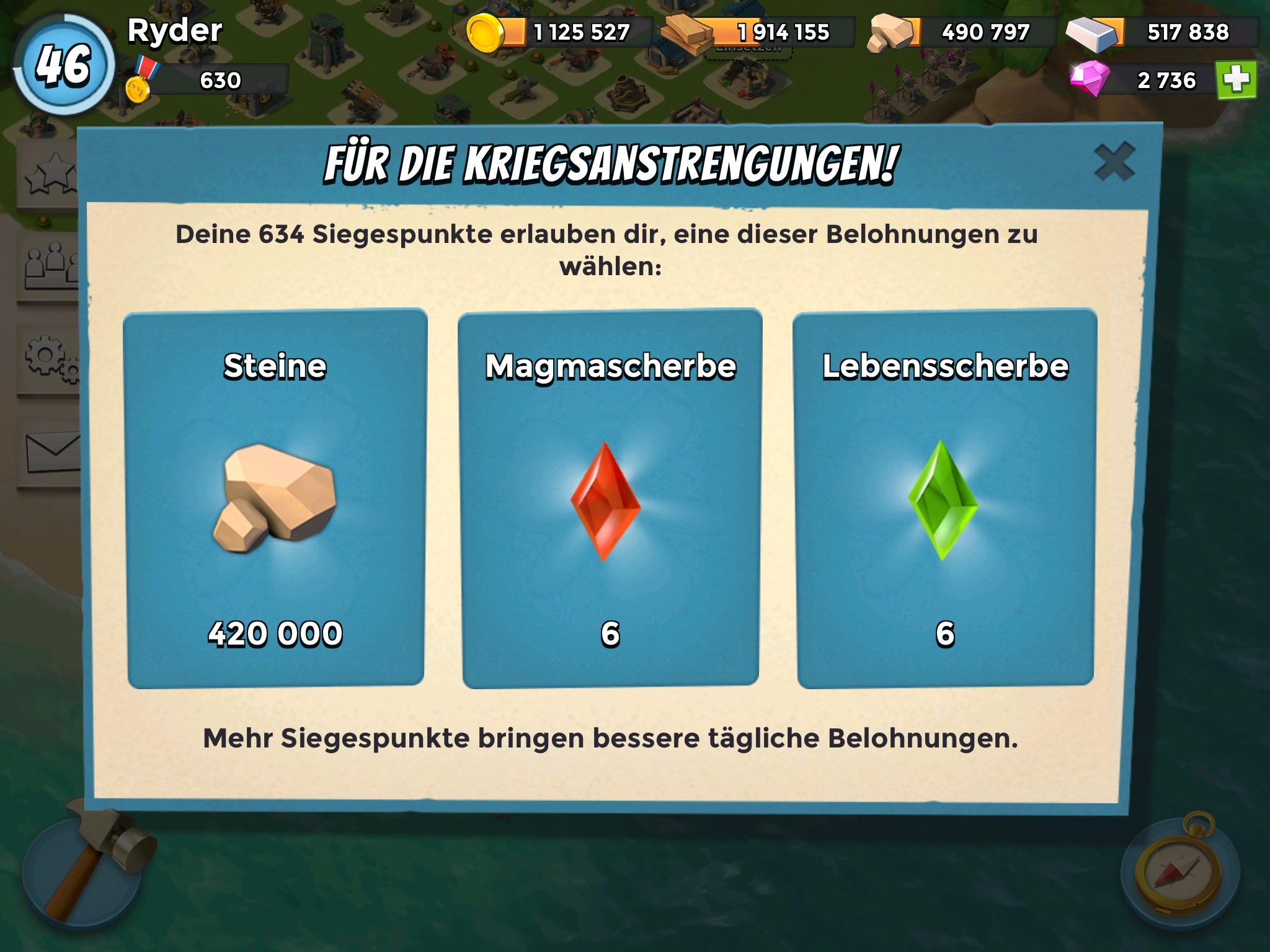 ) - ich hab übrigens die Steine genommen, denn die sind momentan hier Mangelware.Da ich für Samstag das HQ20 Update anvisiert habe, musste ich vorhin noch etliche Hausbesuche machen - das gab dann auch als Nebeneffekt einen heftigen Ranking-Boost - ich war bisher die letzten Tage so bei Platz 150-230...