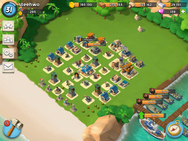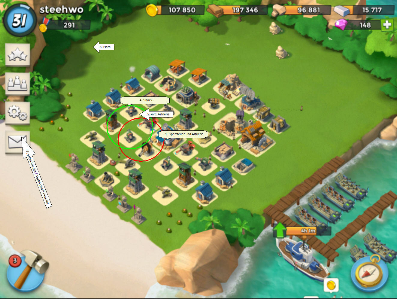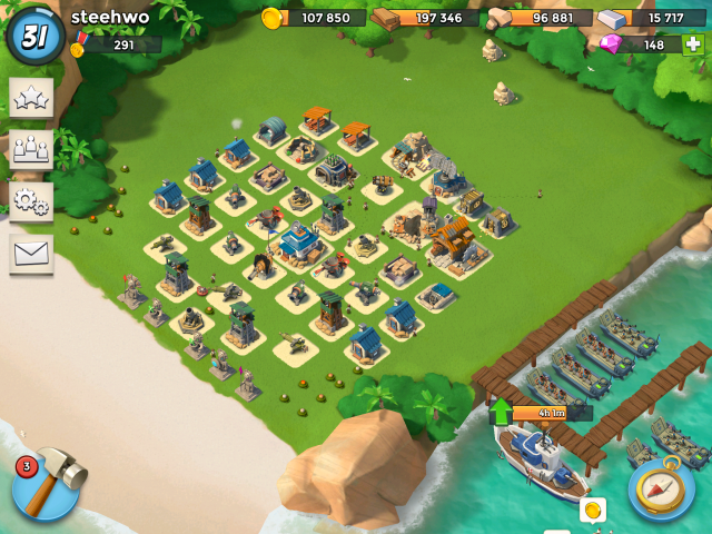 Wie kann ich meine Base noch besser schützen? Soll ich weiter Defense pushen, oder die Boote (Lvl 8/8/8/8/8/6) mal wieder leveln? So langsam sind auch die Ressourcen-Basen nicht mehr wieder zu gewinnen. Alle Lvl 31 und aufwärts mit 5 hochgelevelten Rockets oder Kanonen ohne Ende.