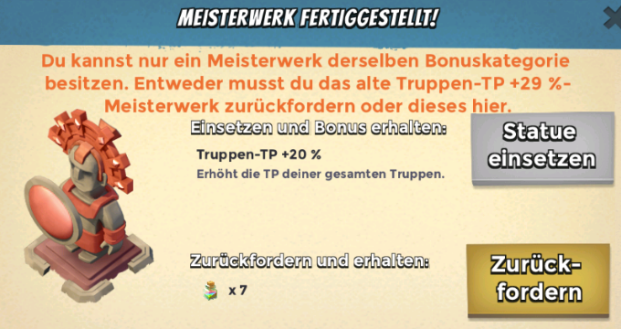 Zum zweiten Mal nacheinander hat mir der Bildhauer ein schlechteres Truppenschaden MW gebaut als ich schon habe.