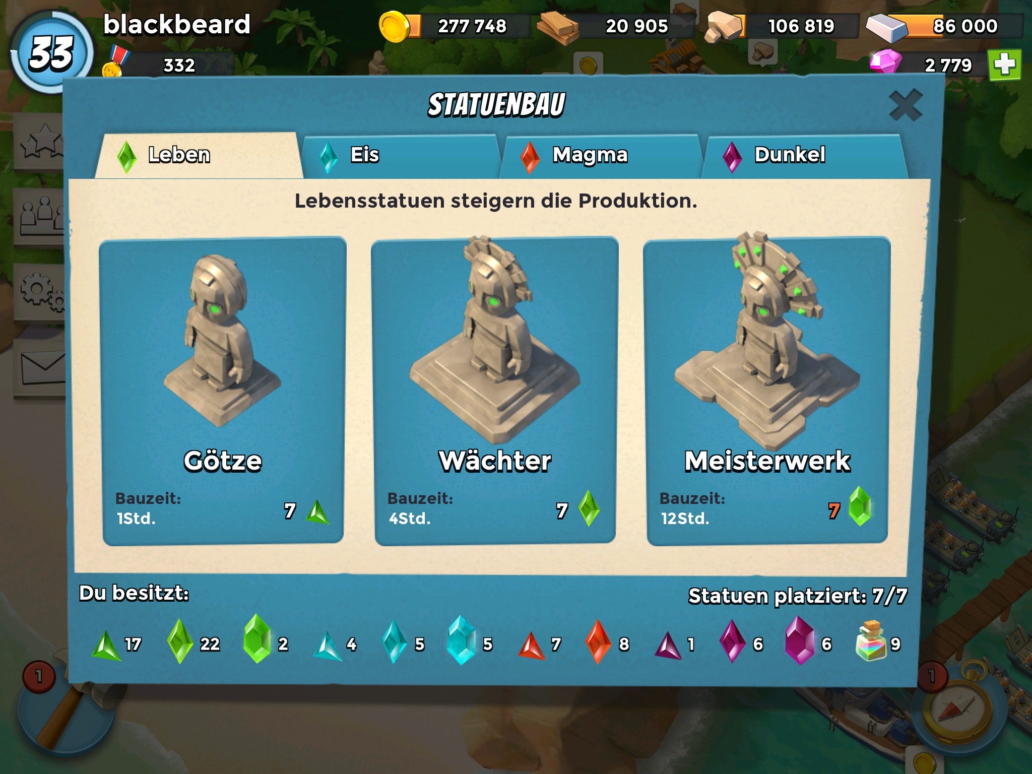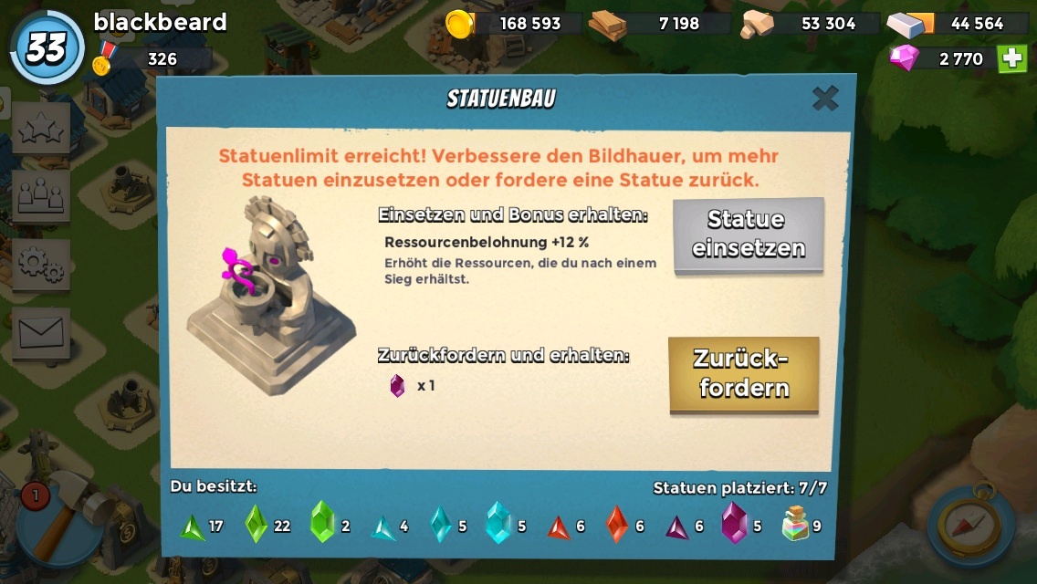 Truppenschaden +26% + 13% | Truppen LP +22% | Beute Boni +48% + 20%+ 19% | 40% + 16% Energie | 65% Kraft durch Steine