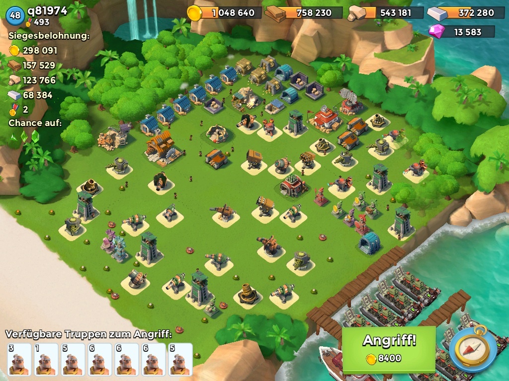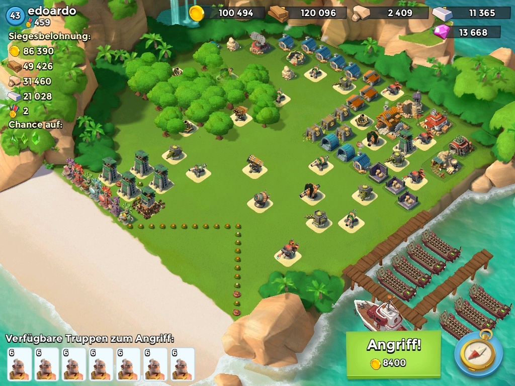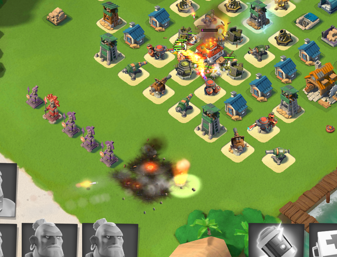 Den würde ich auch platt machen, der zweite shocker reicht nicht bis zum hq. Die blaue statue verstärkt nur den abwehrschaden. Die minen ums hq räume ich mit ner barrage und mach dabei gleich nen flami kaputt den anderen am hq der nicht shockbar ist hau ich mit zweimal artillery oder mit glück nur mit einer weg. Vorne räume ich noch eine mine und dann gehts an der mole lang zum hq mit meinen kriegerchen, ich schocke den schockerund wenn noch eine gehen sollte was ich nicht glaube dann auf den letzten hinteren flammie am hq und das wars, hq 5 4 3 2 1 bähm