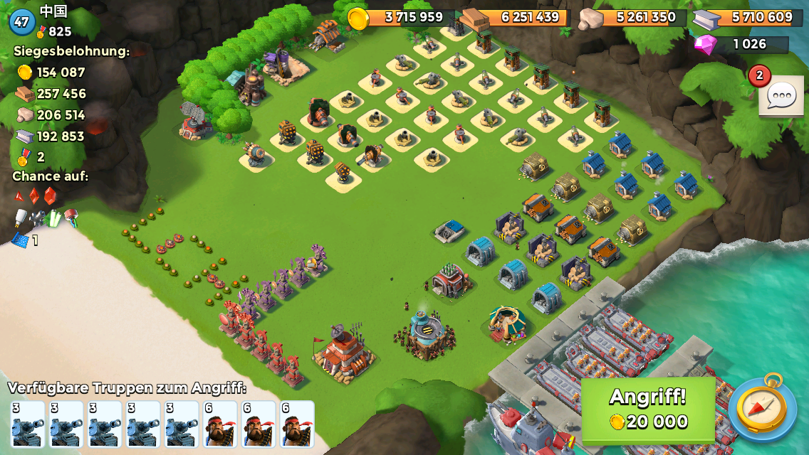 Der Chinese hat blinkene Blaue und das HQ am Strand.