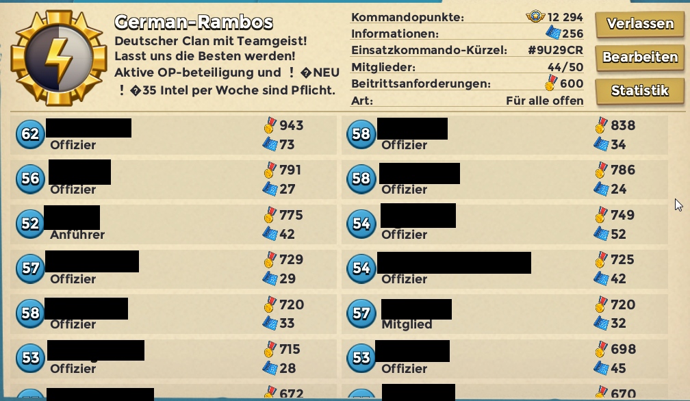 unser deutschsprachiges Einsatzkommando GERMAN-RAMBOS (#9U29CR) hat momentan wieder freie Plätze und freut sich auf DEINE aktive Teilnahme!