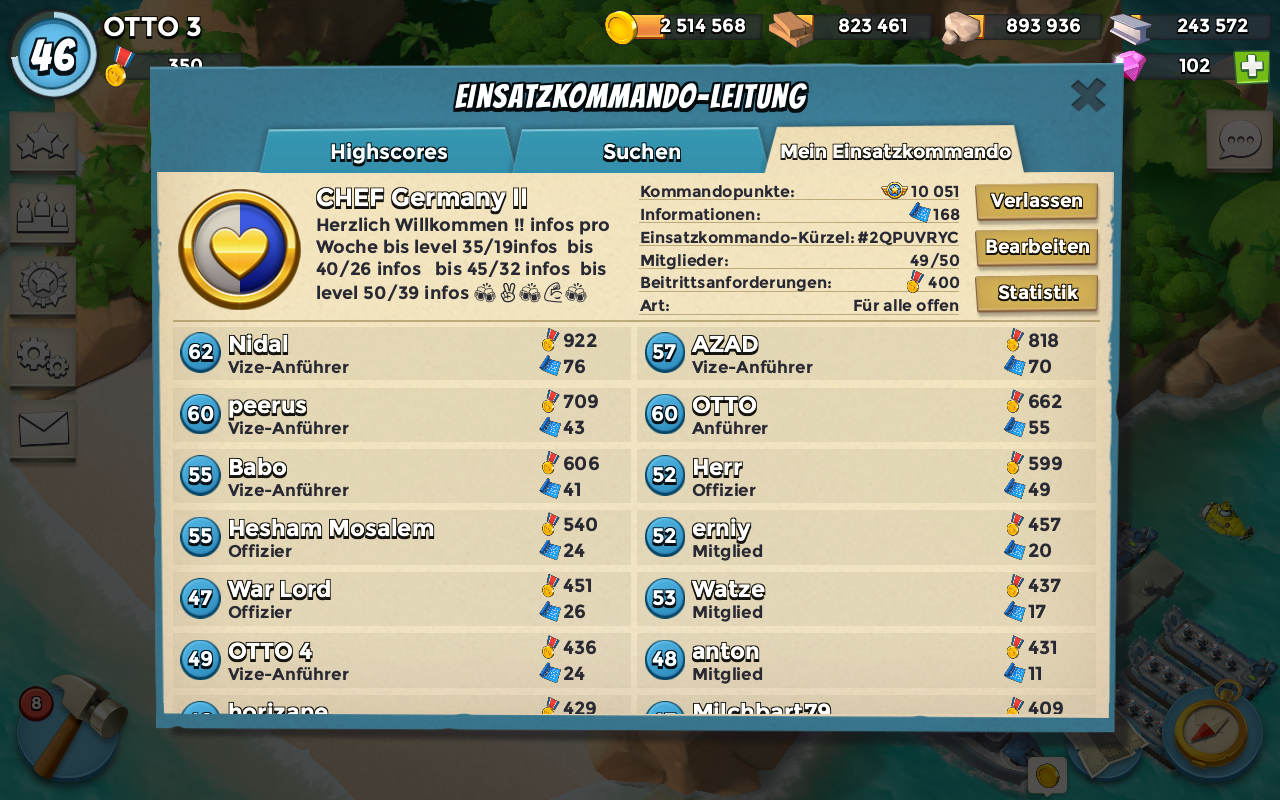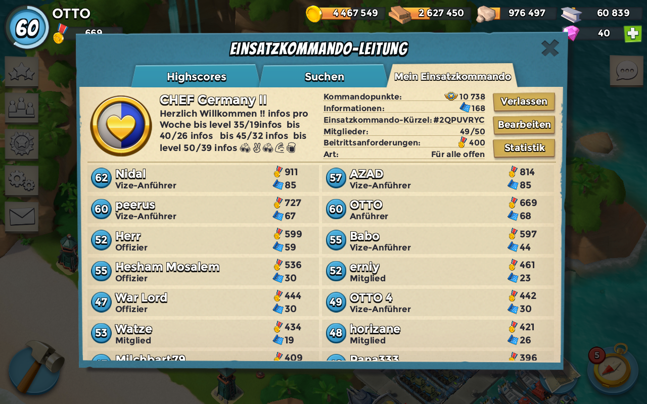 Moin wir in Chef Germany ll haben ohne Ende infos schaffen aber nur Zünder brauchen noch ein Paar starke Spieler die uns helfen !!