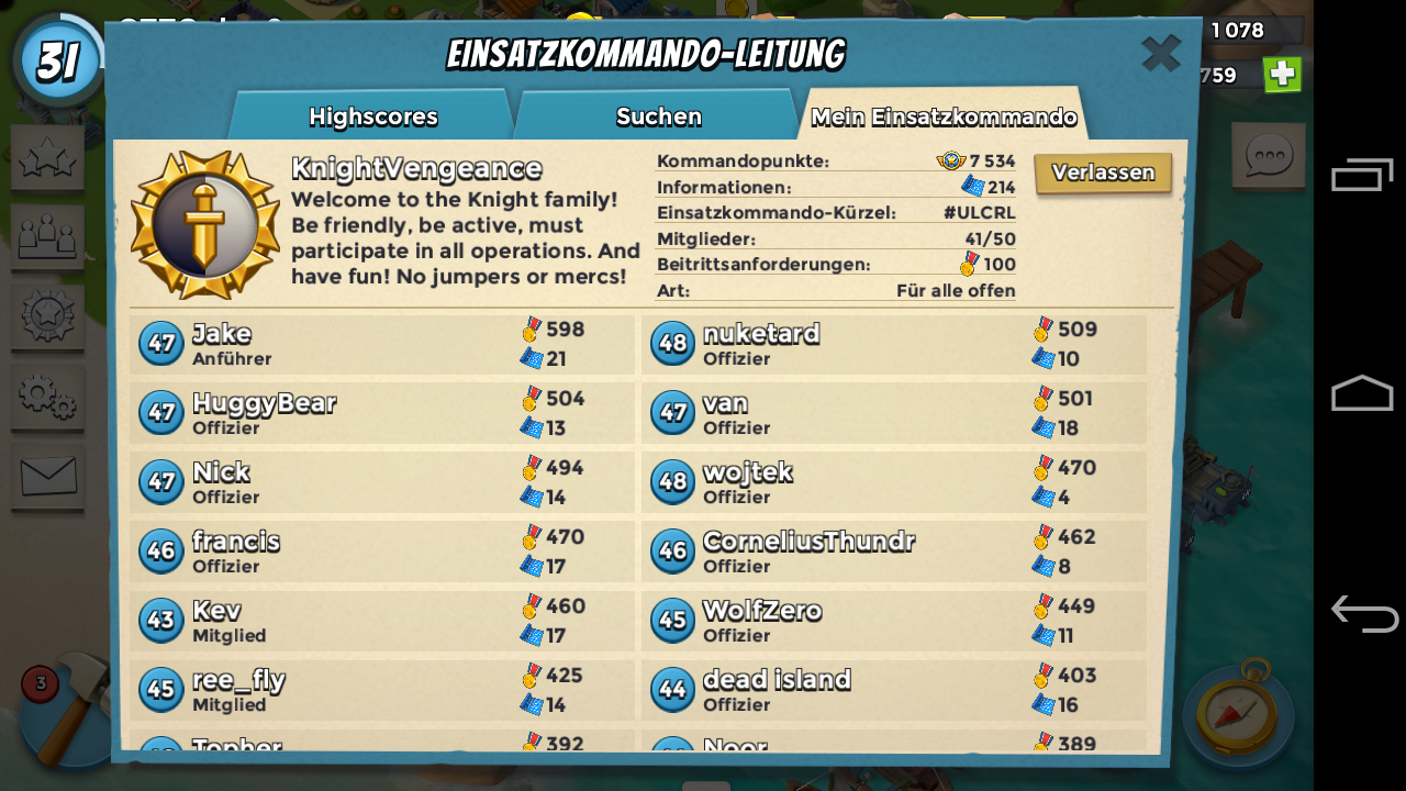 Bin derzeit auf Level 47 (in 3 Tagen LV 48) mit HQ 17 (gerade upgegradet) und habe 510 VP.