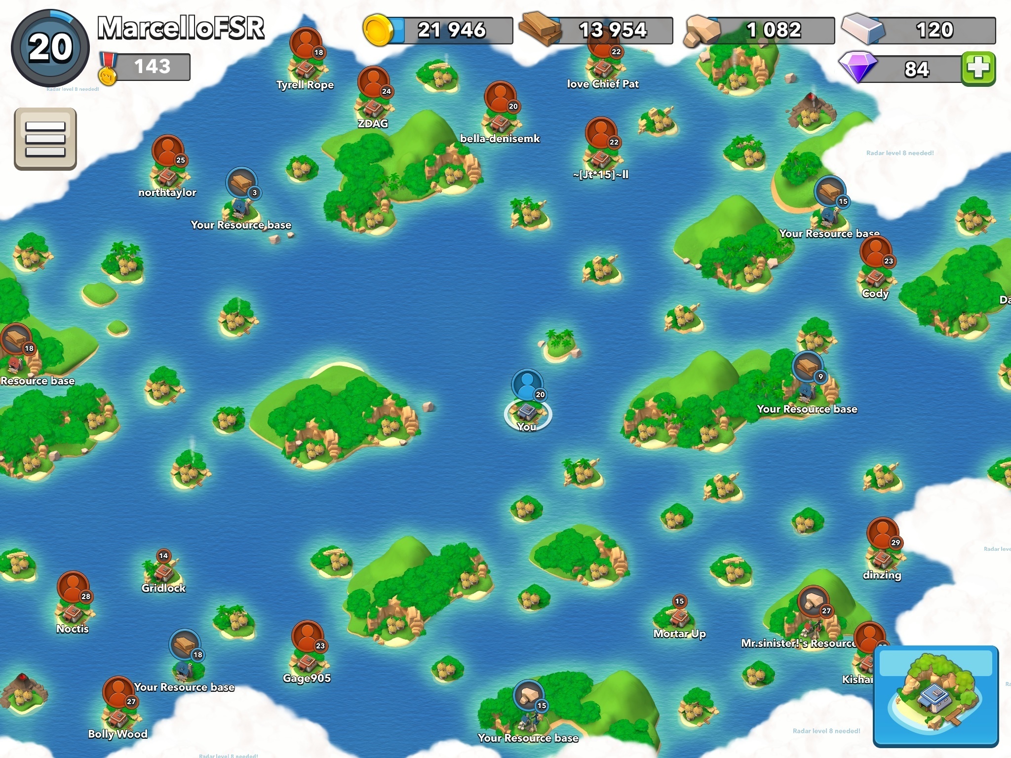 Abend Leute also zeit dem Update verliere ich echt die Lust schaut euch meine Karte an meine karte war immer leer weil ich alles abgeräumt habe, aber da Mann jetzt Level xY Sein muss um sein HQ auszubauen kommt man einfach nicht mehr gegen die aktuellen Gegner an ....