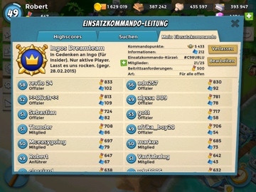 Aktive Spieler, die sich auch aktiv im Chat beteiligen, für jeden Spaß zu haben sind und uns helfen, das "Dreamteam" zu stärken.