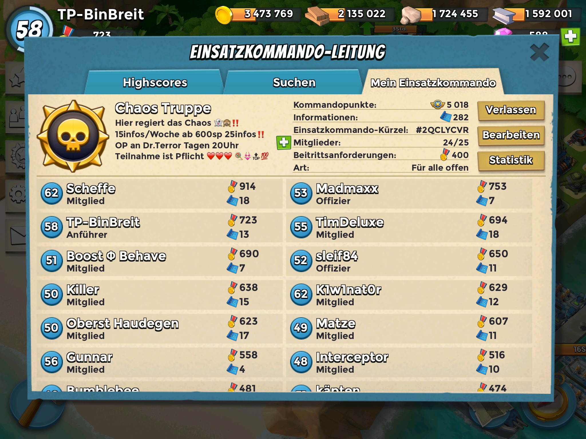 Die Truppe erweitert sich auf 50!!!! Wir suchen neue aktive Mitglieder die täglich mit angreifen und Spaß im gemeinsamen Chat haben. Wenn ihr auf der Suche nach einer Truppe seid dann habt ihr hier die richtige gefunden
