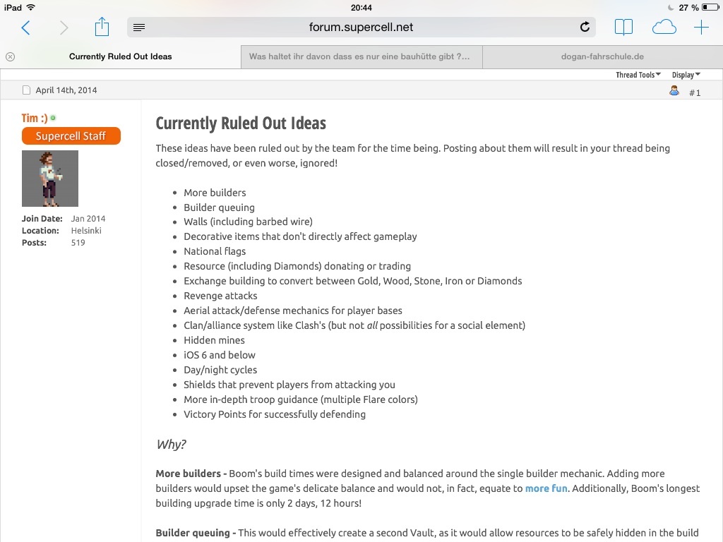 Naja supercell hat hier einmal die "currently runde out ideas" aufgelistet: