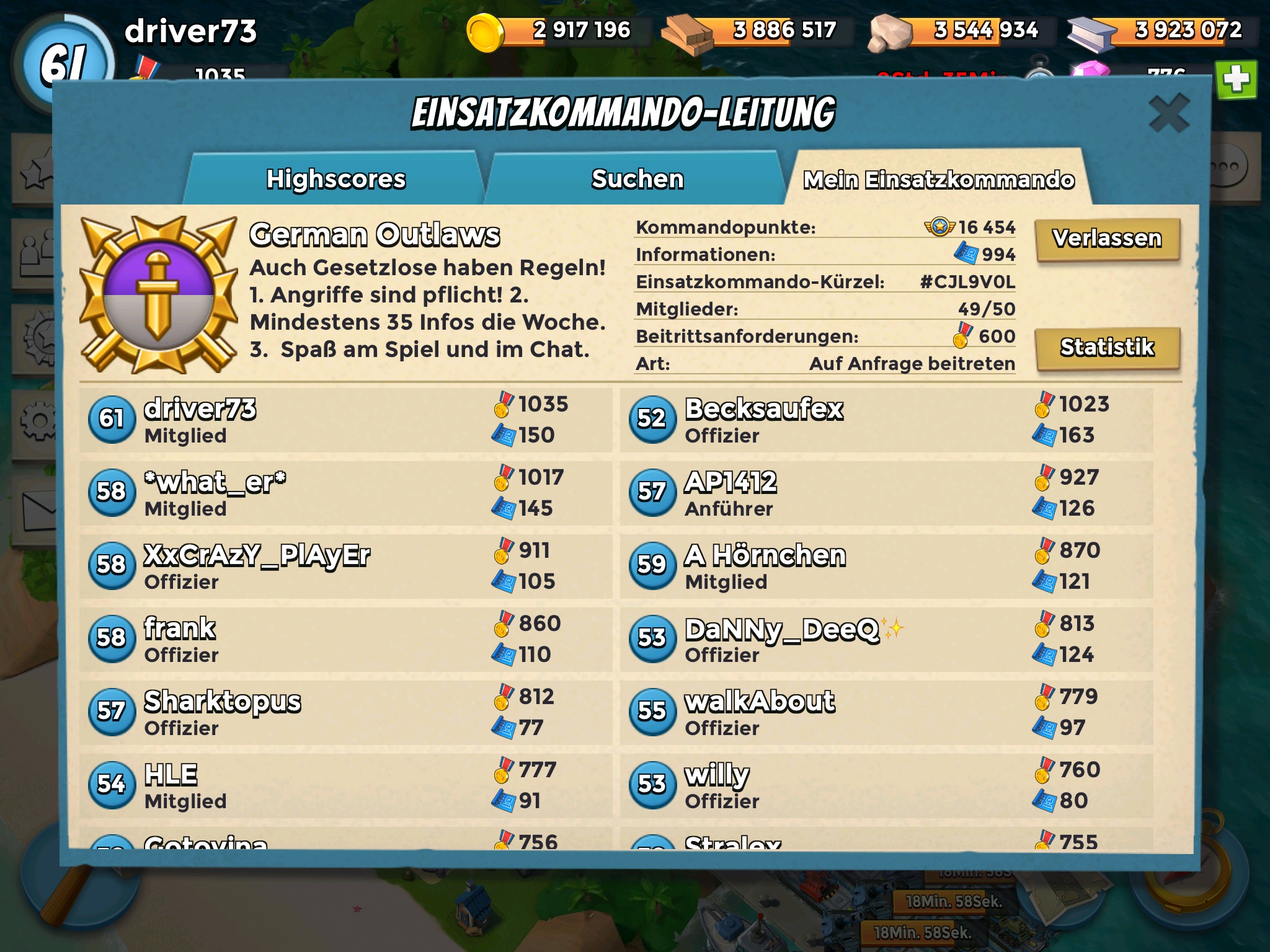 Was wir suchen sind Gleichgesinnte die pro Woche mindestens 40 Infos und einen täglichen op Angriff bewerkstelligen können!