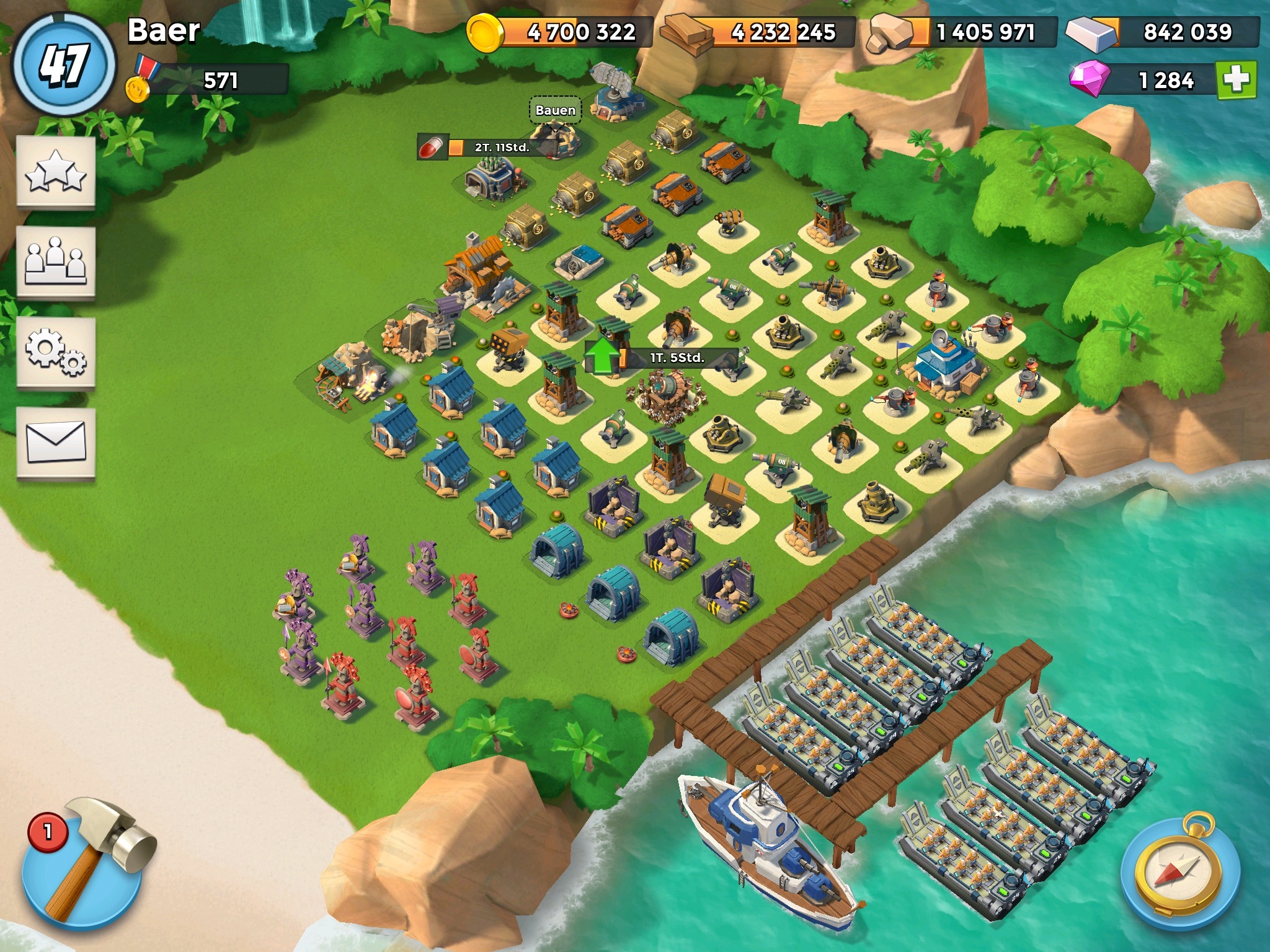Zwei Landungsboote auf Level 20, und auf der Karte liegen auf 12 Dörfer verteilt noch 2mio Eisen zum abholen bereit(ohne Bonus). Da sind die fehlenden 5lc auch schon zur hälfte im trockenen.