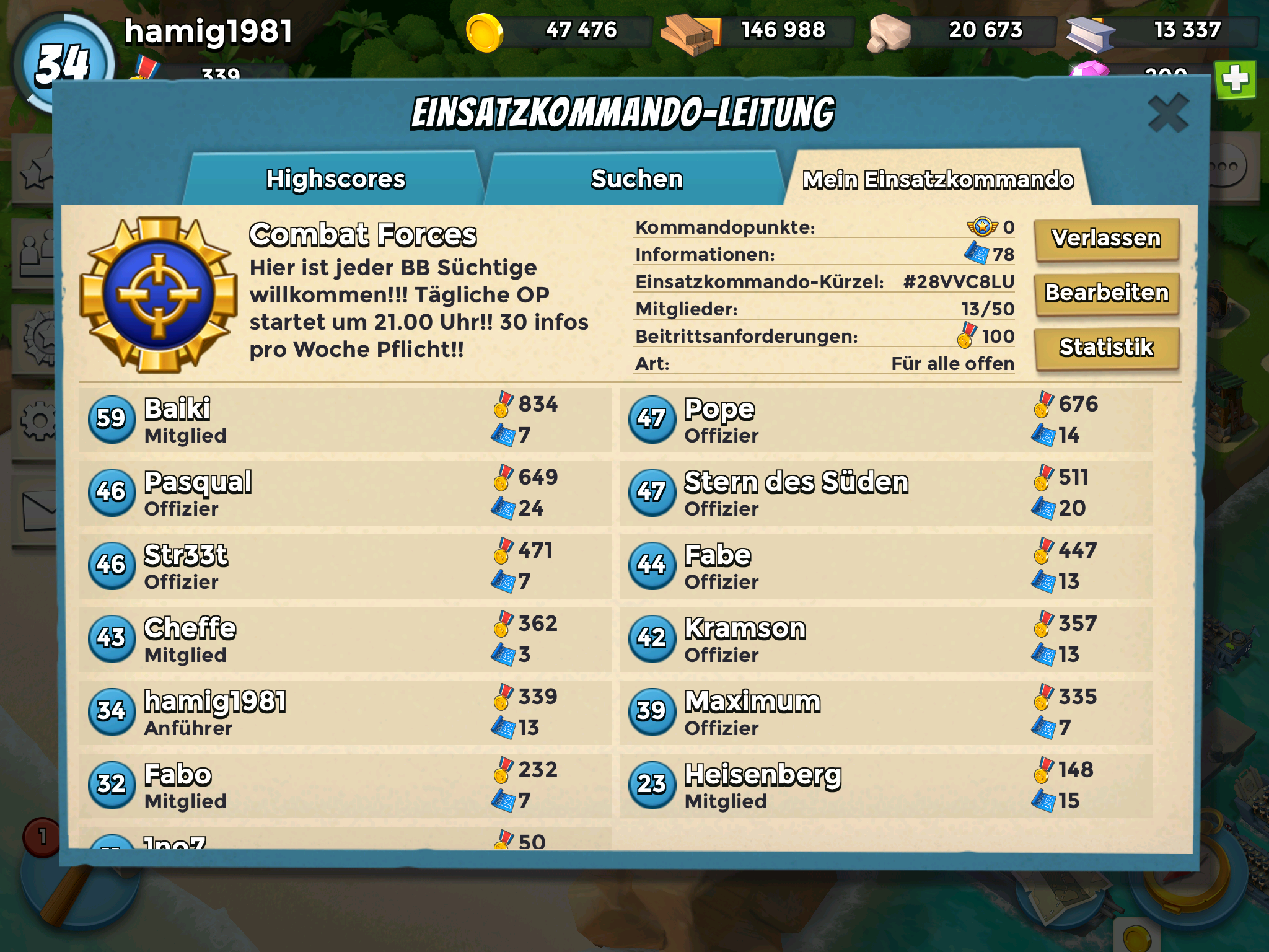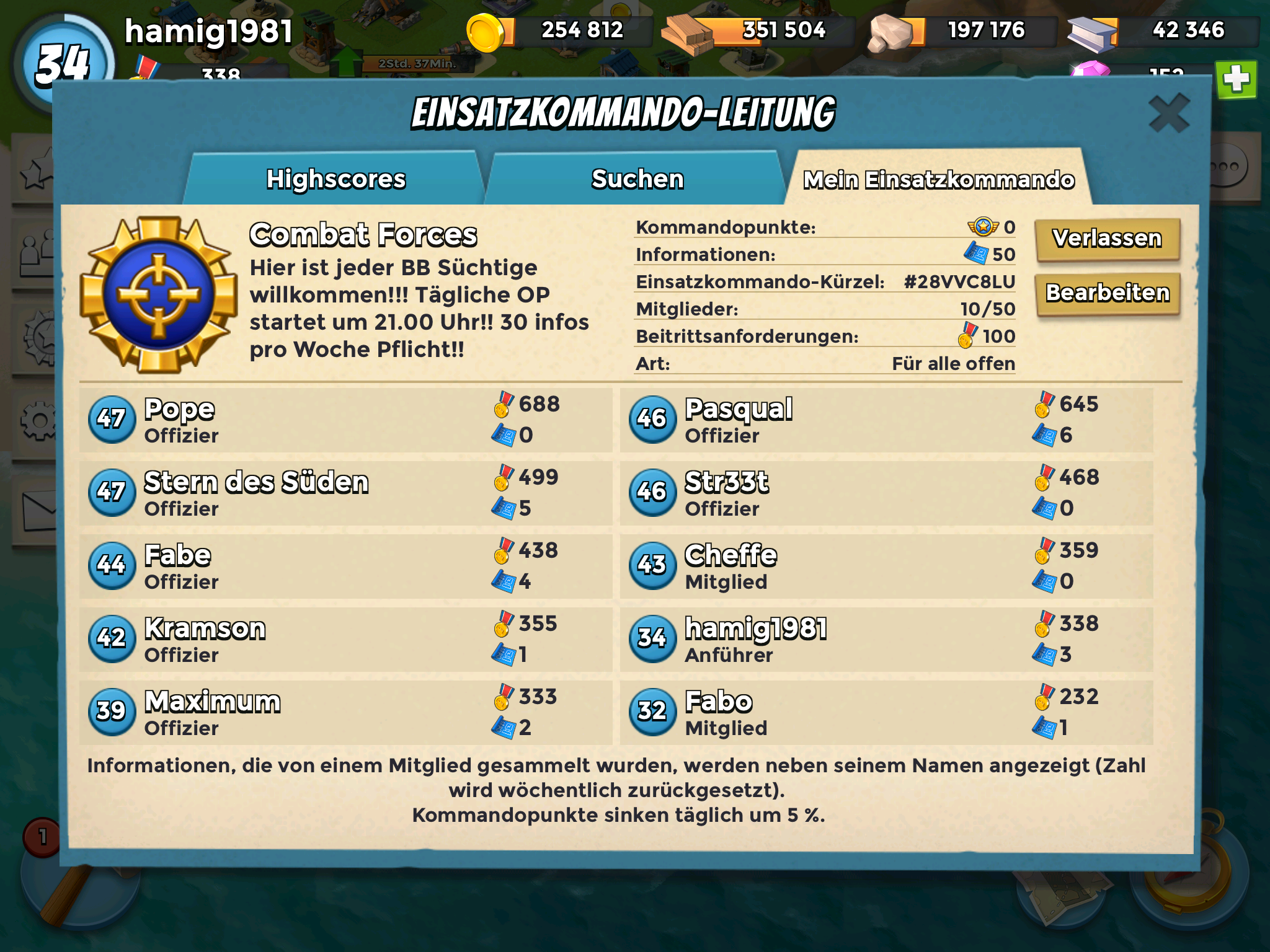 Wir suchen noch Spieler für unser EK! Wir stellen uns kurz mal vor: Alle von uns waren Offiziere eines guten EK und haben alle immer über 50 Infos die Woche gesammelt damit wir 15er OP starten und auch erfolgreich beenden konnten. Aus mehreren Gründen haben wir beschlossen unser eigenes EK zu gründen.Noch sind wir am Anfang und wer auch so süchtig ist kann gerne mal vorbeikommen! Alle sind herzlich Willkommen! Wir sind ne ganz tolle Truppe, nur freundliche Leute und außer mir (hamig1981) alle über Level 40! Wir besprechen die OP's die täglich um 21.00 Uhr starten und schreiben auch immer Infos damit sich jeder auskennt. Im Durchschnitt sind wir über 30 Jahre alt, also keine Kinder dass soll aber nicht heißen dass wir nur gleichaltrige begrüßen sondern dient nur als Information! Falls ihr Fragen habt scheut euch nicht sie zu stellen!
