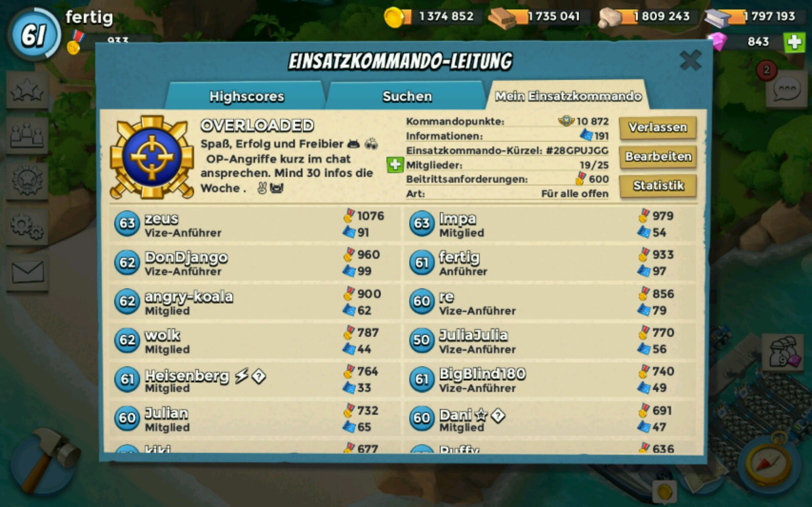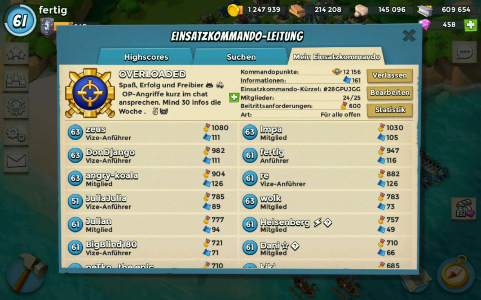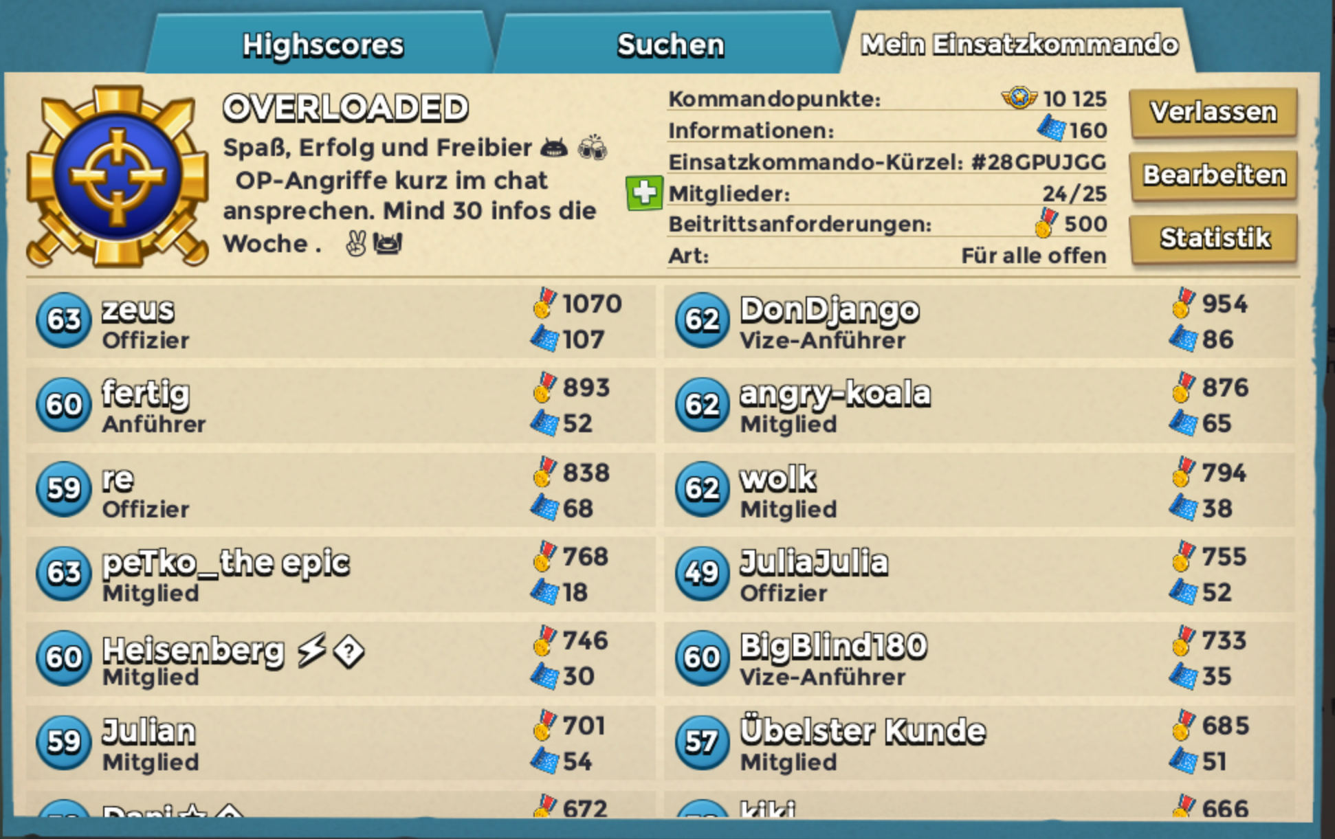 Diese Woche haben wir mehrmals unsere Höchstpunktzahl geknackt, spielen überwiegend Festung und suchen einen motivieren und treuen Spieler.