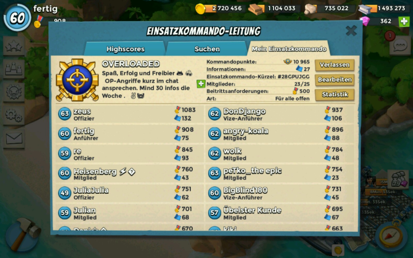 Wir sind ein aktives 25 er ek und suchen genau 6 Spieler damit wir wieder Festung starten können.