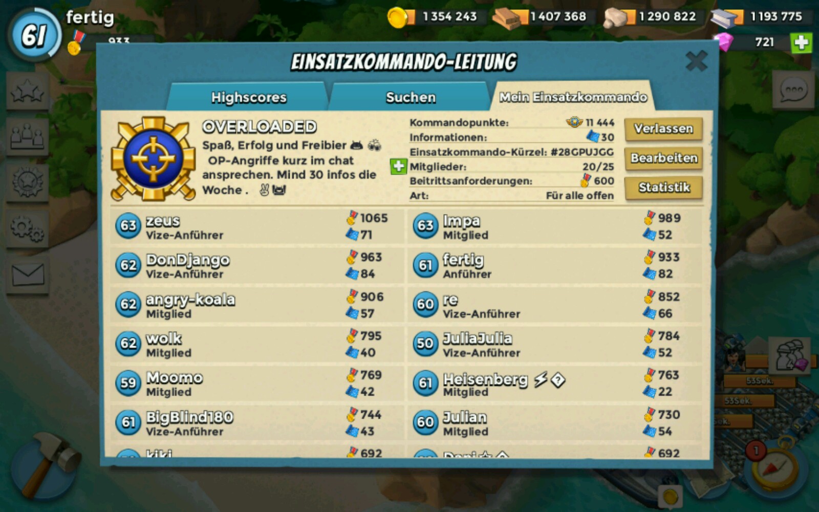 Aktuell haben wir nur noch einen Platz zu vergeben! Gestern mit 21 Angriffen Festung gerockt