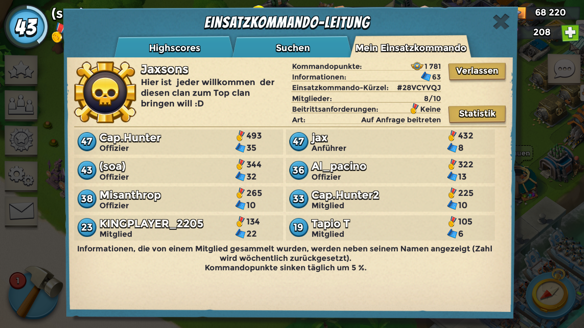 Hi leute suchen noch 2 aktive spieler mindestens level 34