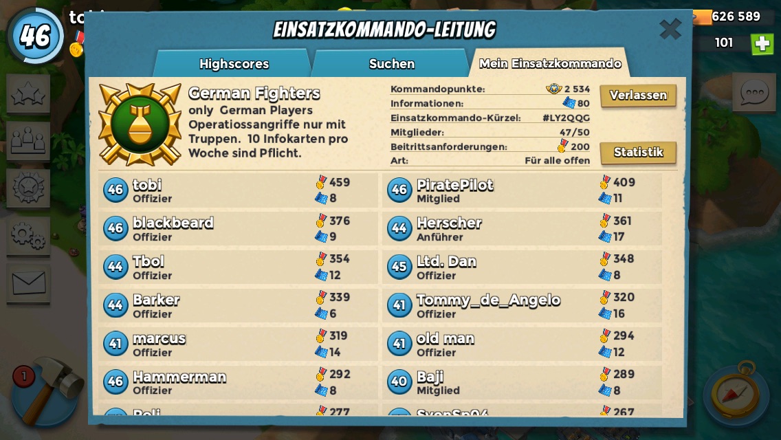 sonstige Anforderungen: Angriffspflicht mit Truppen bei Operationen. 10 Infos pro Woche. Aktivität im Chat gern gesehen. Später Whatsapp Gruppe für die Offiziere.