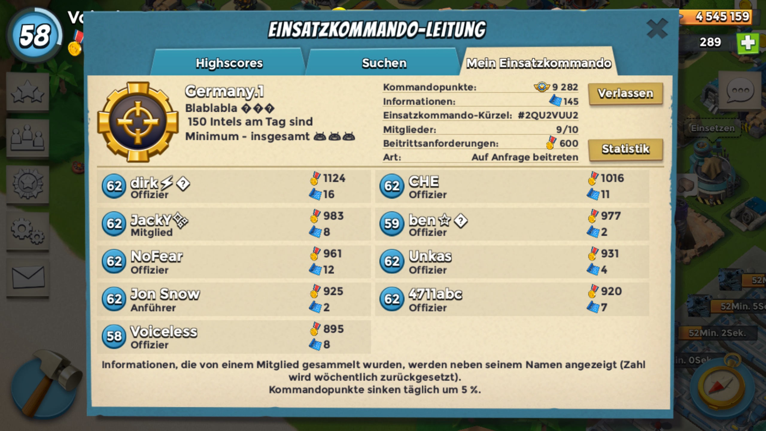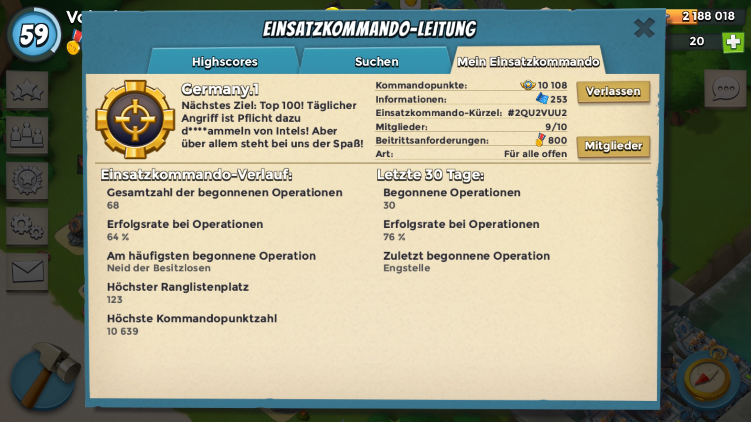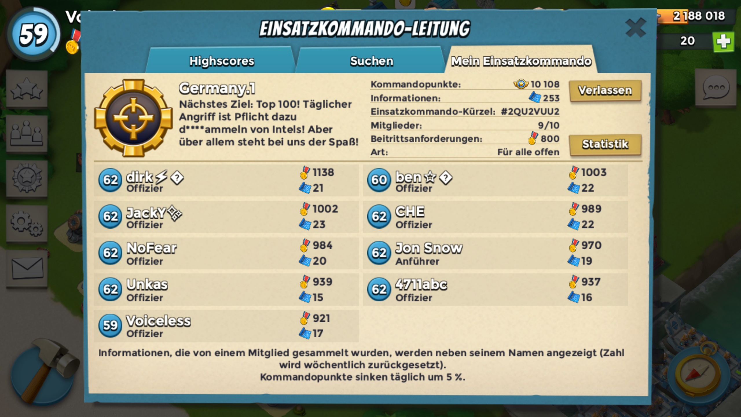 Wir "Germany.1" zur Zeit 10108 Kommondopunkte suchen:einen starken Spieler der uns hilft auf dem Weg Richtung Top 100 und besser der 10er Taskforces.