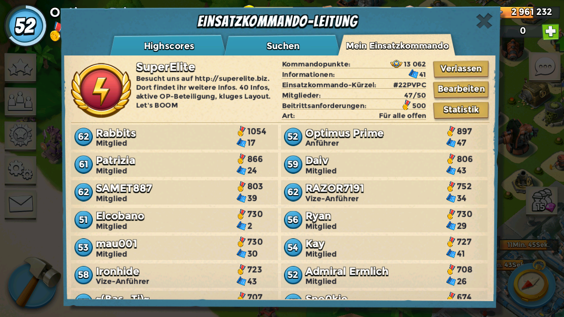 Aktuell haben wir die 13K geknackt und starten täglich ab ca.20.00 Uhr eine OP. Standard ist Foxtrot, Festung ruft!