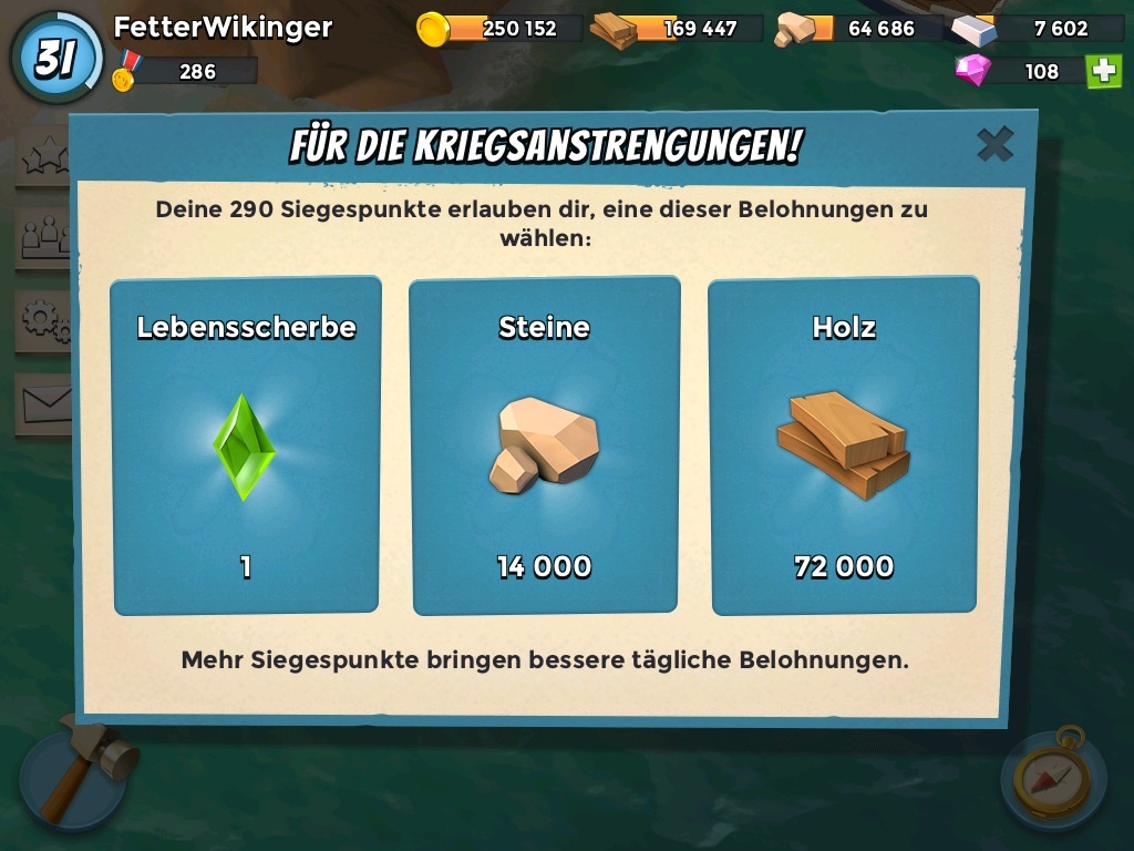 Also ich habe seit dem Update komischerweise stein und Eisenmangel aber Holz im Überfluss... Wegen dem submarine und dem Daily reward abgesehen davon hab ich mein holz Meisterwerk geboostet und seit ca. Einer Woche 110% mehr