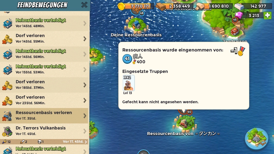 Besser wäre es wenn man einen erkennt demjenigen einige Dias zu schenken indem du deine boote mit schützen belädst und die im "Kampf" opferst