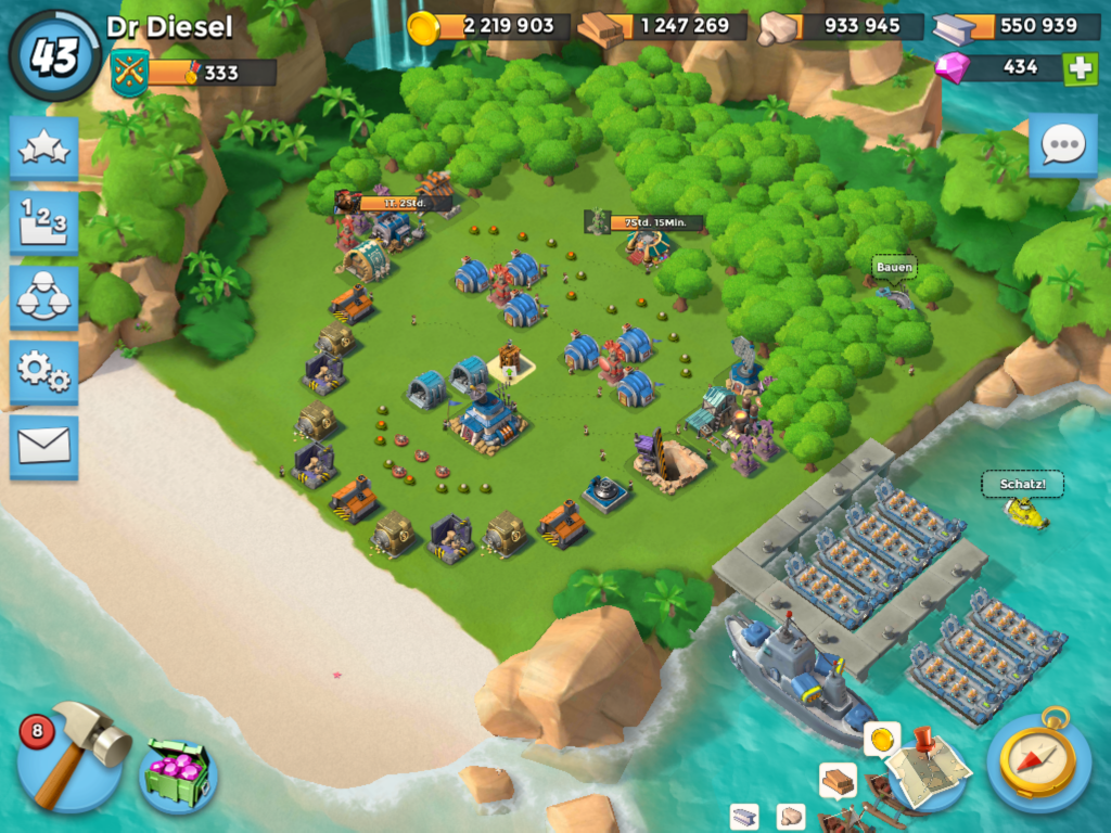 Bis Erfahrungslevel 42 brauchst du überhaupt keine Def. Dann hast du Hq 17 und 7 Landungsboote mit je 21 Plätzen. Noch ein paar Tipps: Fördere die Truppen, mit denen du gut klar kommst. Z.B. Krieger oder Hooka oder Panzer/Sani nicht alle gleichmäßig. Schließe dich einen aktiven Einsatzkommando an, die OP Belohnung hilft auch beim Upgraden ebenso die UBoot Tauchgänge. Dr T und Computergegner kosten keine Siegpunkte, bzw bekommst du sie wieder abgezogen. Die sehr teuren Upgrades verlege auf den zweiten DrT Tag, nachdem du dich am ersten schon ein bisschen mit Ressourcen aufgeladen hast. Ein Meisterwerk für Ressourcenbelohnung solltes aufstellen und bei Upgrades busten. Gegner mit sehr wenig Ressis wegtauschen. Viel Erfolg.