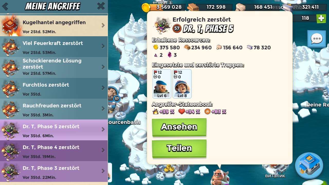 Uwe musste zumindest einsehen, dass er auf Dauer Defense bauen muss um EPs für die höheren HQs zu farmen.