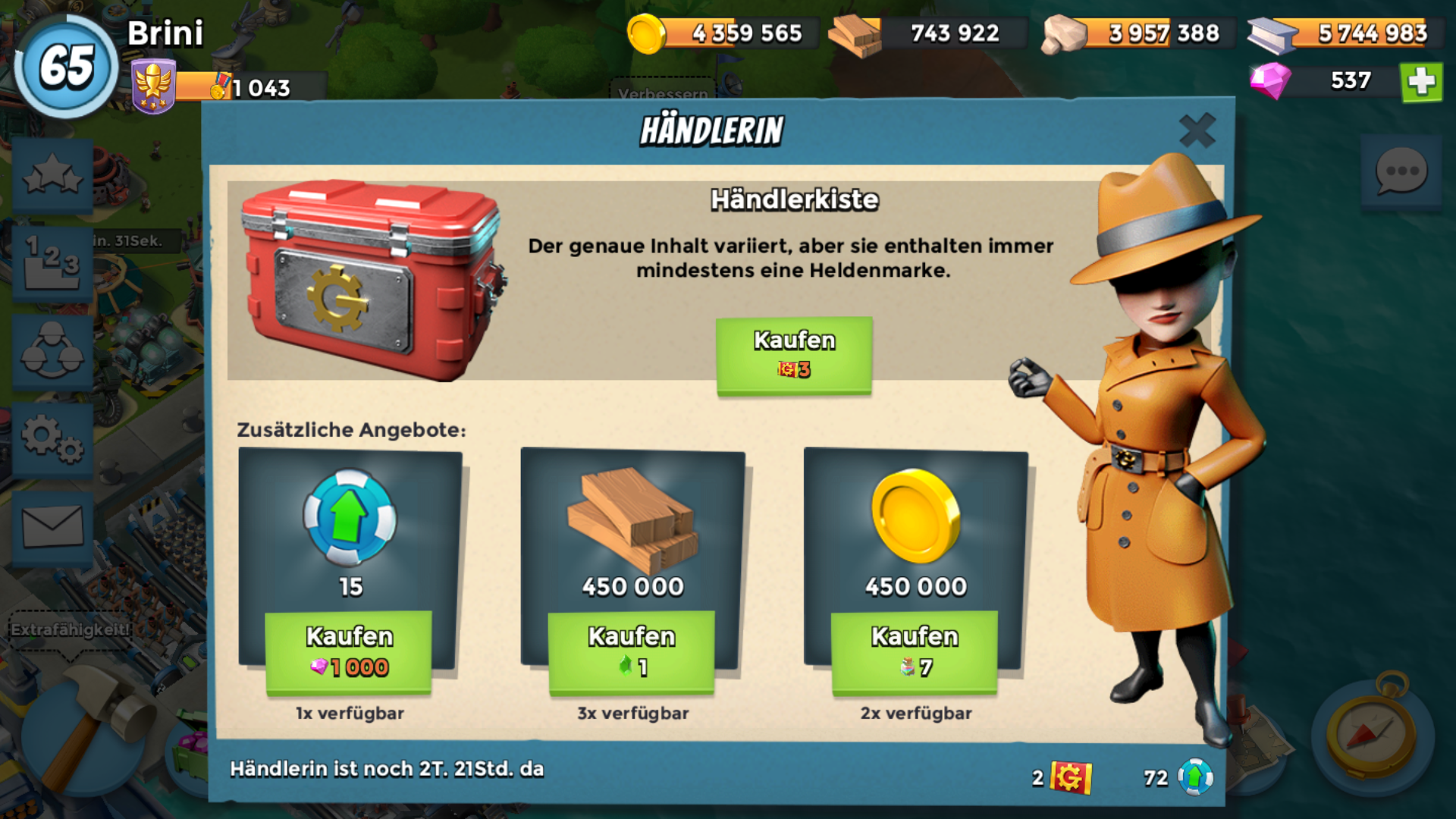 Habe gerade eben mal meine Händlerin Angebote gecheckt. Ich hab extra die Woche mich schon drauf gefreut dass ich meine gesparten 500 Dias für die Händlerin ausgeben kann, und dann kommt zufällig ein 1000er Angebot rein. Ich habe halt langsam das Gefühl dass das Angebot von der aktuellen Diazahl abhängt, da ich als ich kurz vor 300 war ein Angebot für 300 und als ich kurz vor 500 war ein Angebot für 500 mal bekommen habe.
