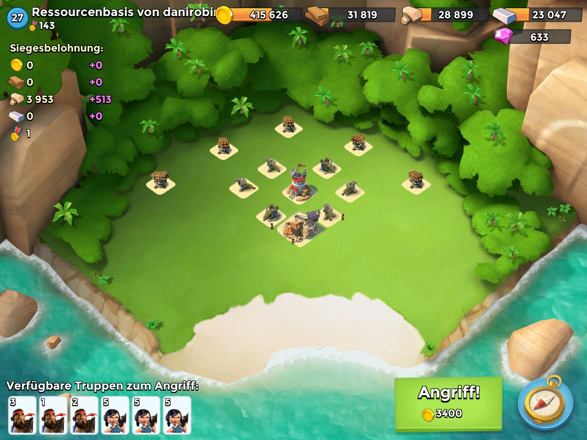 Habe heavies Lv 8, zooka Lv 7 und Warrior Lv 4, 6 32 Energie auf Kanonenboot und 6 landungsschiffe Lv 8, bombardement 2 , medi Level 8 , freeze Level 3 , Artillerie lv8
