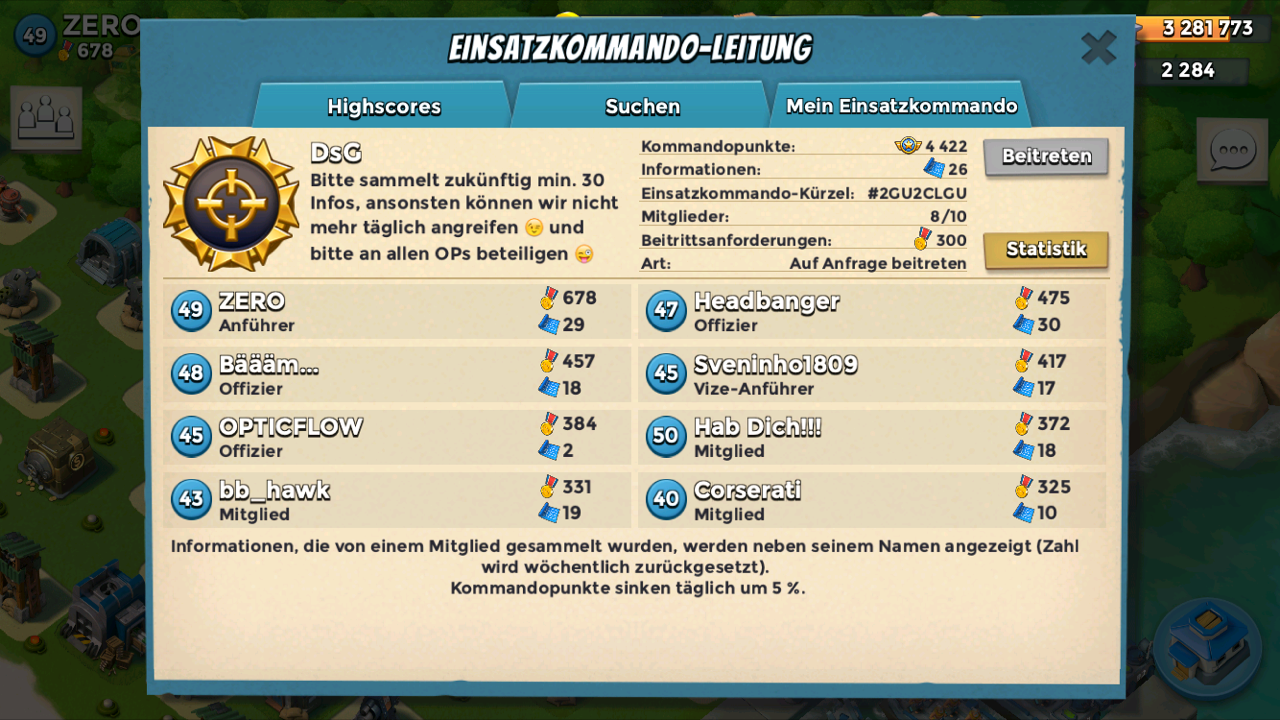 wir haben gerade 2 Plätze frei in unserem EK. Wir haben täglich eine OP und sind alle aktiv. Aktuell spielen wir die OP Panzertänzer, aber haben auch die drüber schon mehrmals geschafft. Wenn Ihr täglich fleißig Infos sammelt, damit wir auch täglich OP starten können und an allen OPs beteiligt seit ihr gerne willkommen.