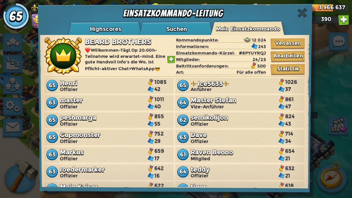 Wir heißen dich Herzlich willkommen bei den Beard Brothers, natürlich solltest du ein paar Voraussetzungen mitbringen 1. Diszipliniert an den Operationen Teilnehmen und 2. Verhältnis mäßig zu deinen Siegespunkten Informationen sammeln ansonsten steht Spaß am Spiel bei uns im Vordergrund.