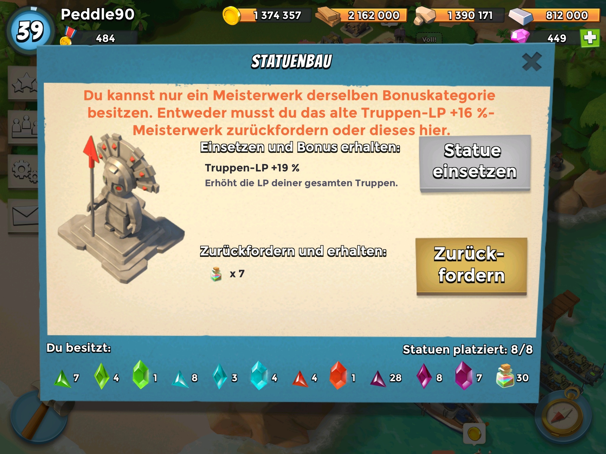 Und wehe das dunkle Meisterwerk welches gerade gebaut wird, wird keine Ressourcenbelohnung!! Bei meinem Glück wird es eh wieder Kraftsteinchance...