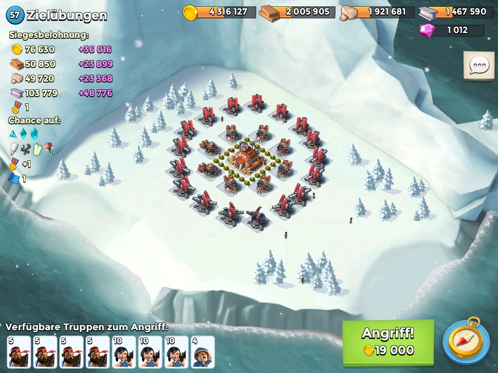 Ich habe es jetzt mal mit Schwergewichten und Hookas probiert. Klappte super!! Vier solcher Basen hatte ich auf der Karte. Die Verluste hielten sich in Grenzen. Durchschnittlich 3 Schwergewichte und 2 Hookas.Beim nächsten Mal probiere ich die Tank Variante.