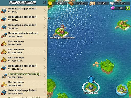 In den letzten Tagen werde ich ständig angegriffen, genauer gesagt meine Heimatbasis wird andauern geplündert. Eigentlich sieht meine Abwehr ganz gut aus, denke ich zumindest. Anbei zwei Fotos.