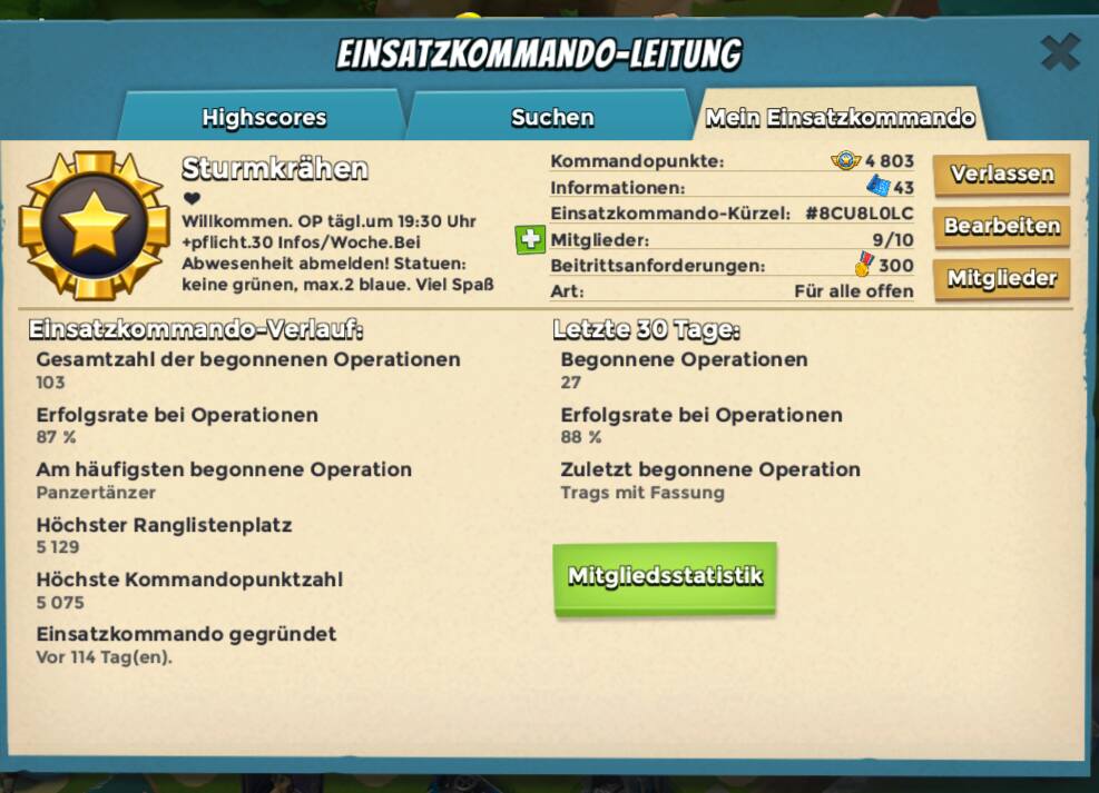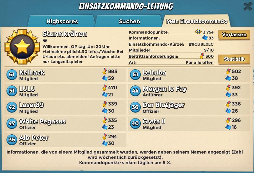 wir haben nach einigen unerwarteten Abgängen wieder 3 Plätze in unserem 10er EK frei und suchen aktive und zuverlässige Spieler die lust auf ein freundliches EK und gemeinsame OPs haben