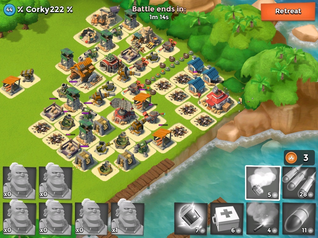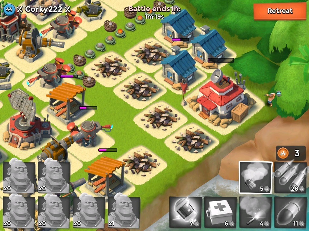 Diesmal habe ich mich mit Tanks/Medics bis einschliesslich Stage 12 begnügt, dann hatte ich genug Ressourcen. Anbei der Shot fuer Stage 13.