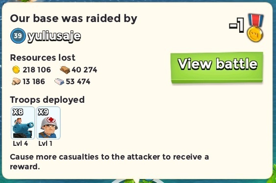 Aber knapp 40mal finde ich heftig..ich guck noch mal auf Deine Base. Ansonsten würde ich iwas aufleveln, was grade geht (dh wenn Ressourcen da sind) und besonders lange dauert (Sniper oder so). Dann einfach mal mind. 12 h strikte Pause machen und ein paar KI-Basen "kommen lassen", vllt auch den einen oder anderen neuen Online-Gegner. Dann zuschlagen und die Ressourcen sofort einsetzen. Keine Ressourcen auf der Basis einsammeln, die gehen bei Raids großartig NICHT verloren (hab ich mal getestet - ein paar Pfennige musst Du natürlich abgeben).