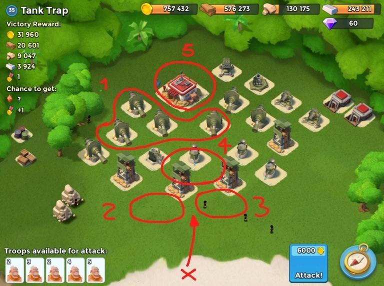 1. durch geschickte Schuesse mittels Sperrfeuer/Artillerie Zerstörung von 4 Booms (1 Lvl 3, 3 Lvl 1)
