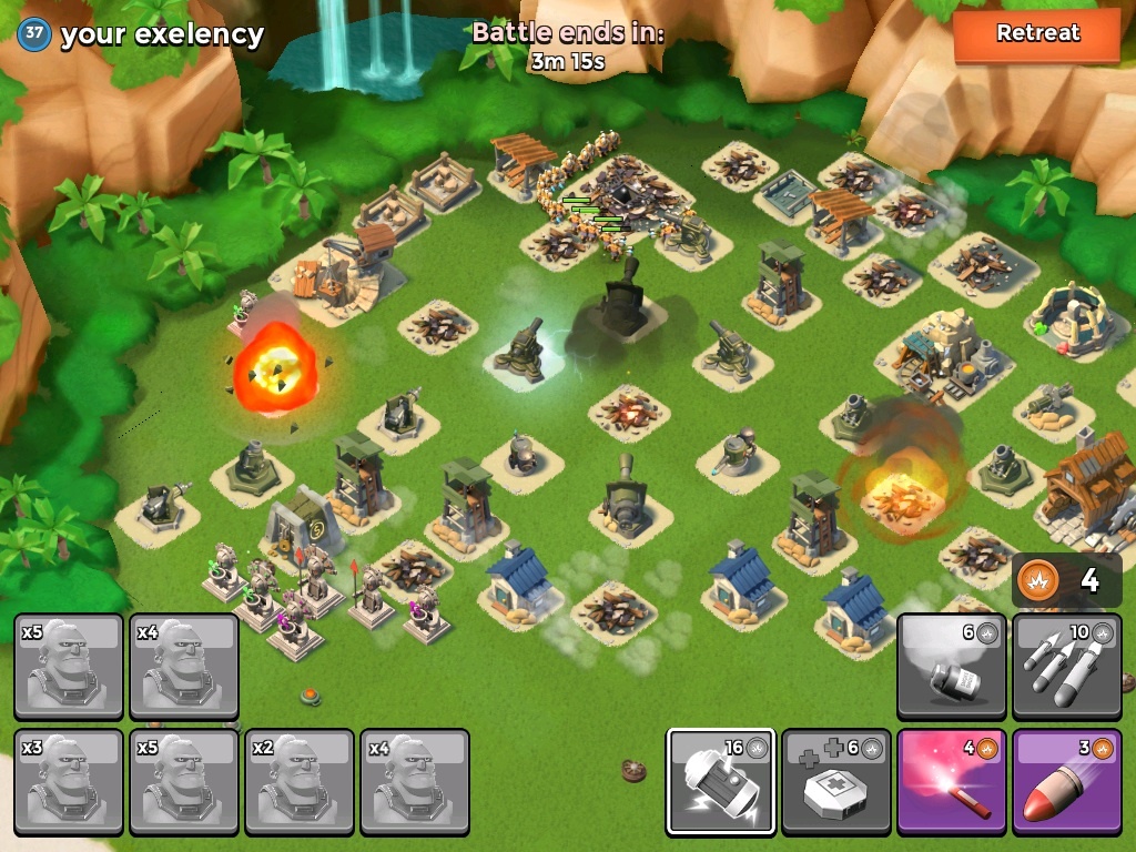 Rechts gemütlich unter Rauchschleier durchmarschiert. Das HQ wird nur durch drei FW Lvl 7 geschützt, wobei 2 durch das Gunboat ausgeschaltet werden. Den Rest machen die Krieger