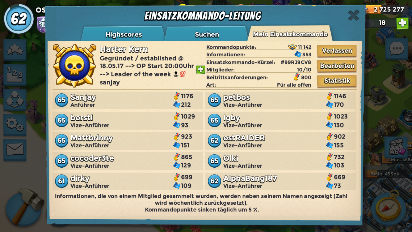wir sind jetzt bei etwas mehr als 9000 Punkten. Alle greifen an, alle beteiligen sich nach wie vor am Sammeln und chatten
