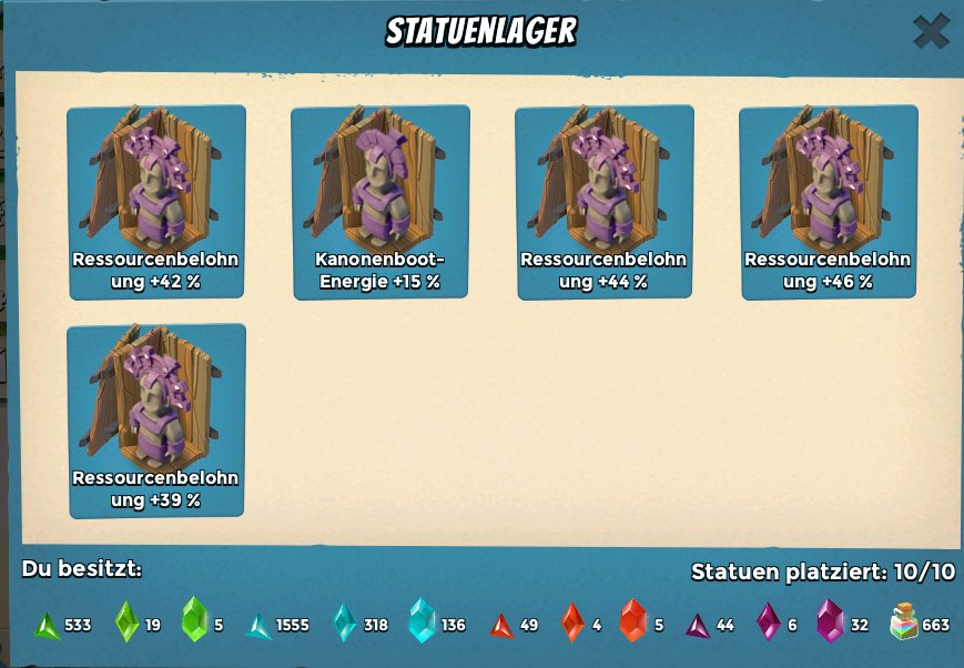 Nach dem letzten Update hab ich wieder ein RR MW aufgestellt (41 %), dann hab ich mir gedacht mit dem neuen Statuenlager kannst ruhig in die Produktion gehen und die dunklen Kristalle umwandeln - dann kam gleich ein RR mit 47 %, das steht natürlich jetzt und hilft brav mit die neuen Upgrades zu machen. Dann klopt der Kerl weiter und was kommt raus: