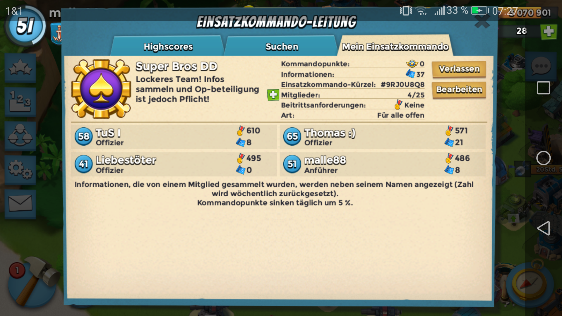 das jedoch regelmäßig ausmistet und leider oft, wie alle, an unaktiven spielern leidet. Wir spielen aktuell täglich foxtrot und würden gern mal höher gehn